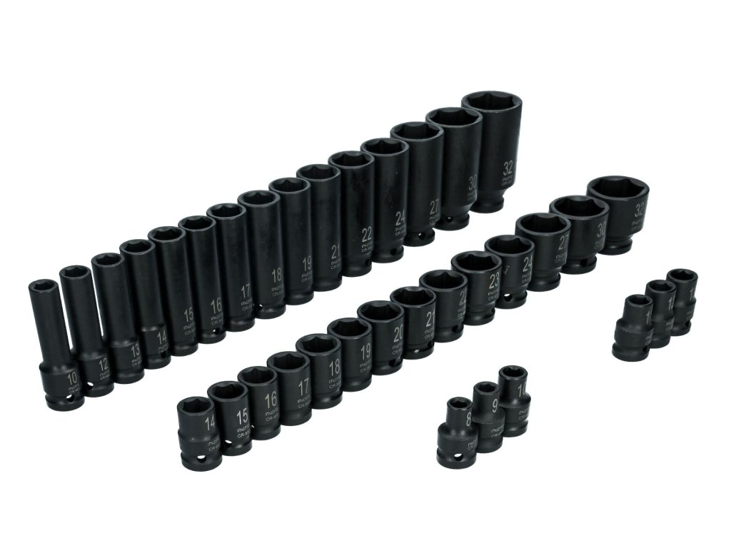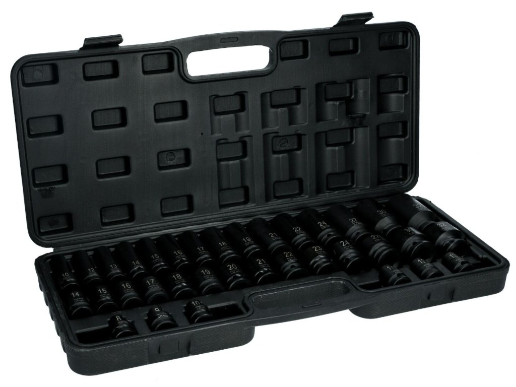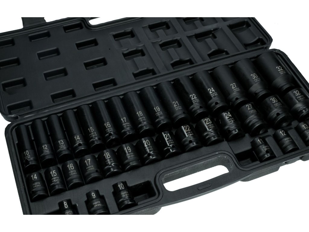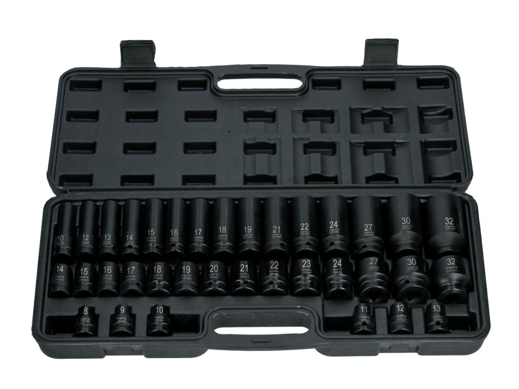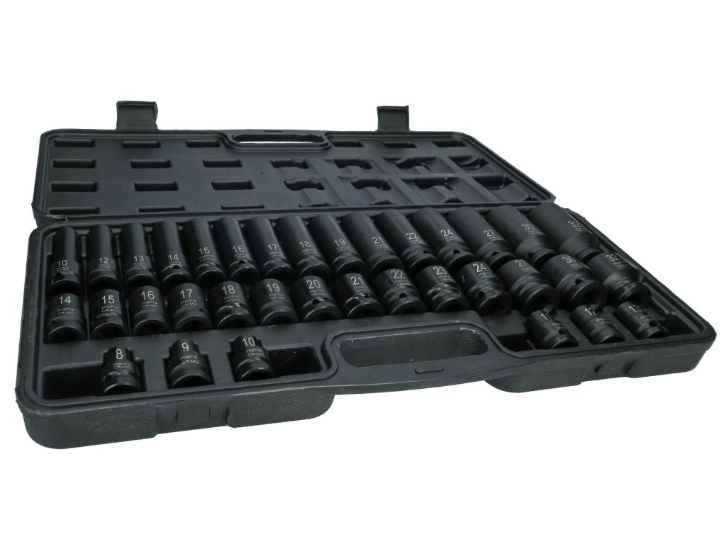 Profesionální sada 35 rázových nástavců INVENTO 1/2" je kompletní řešení pro práci s pneumatickými i elektrickými utahováky. Obsahuje dlouhé i krátké hlavice, díky čemuž je ideální pro širokou škálu úkolů – od servisu automobilů po montážní práce.
