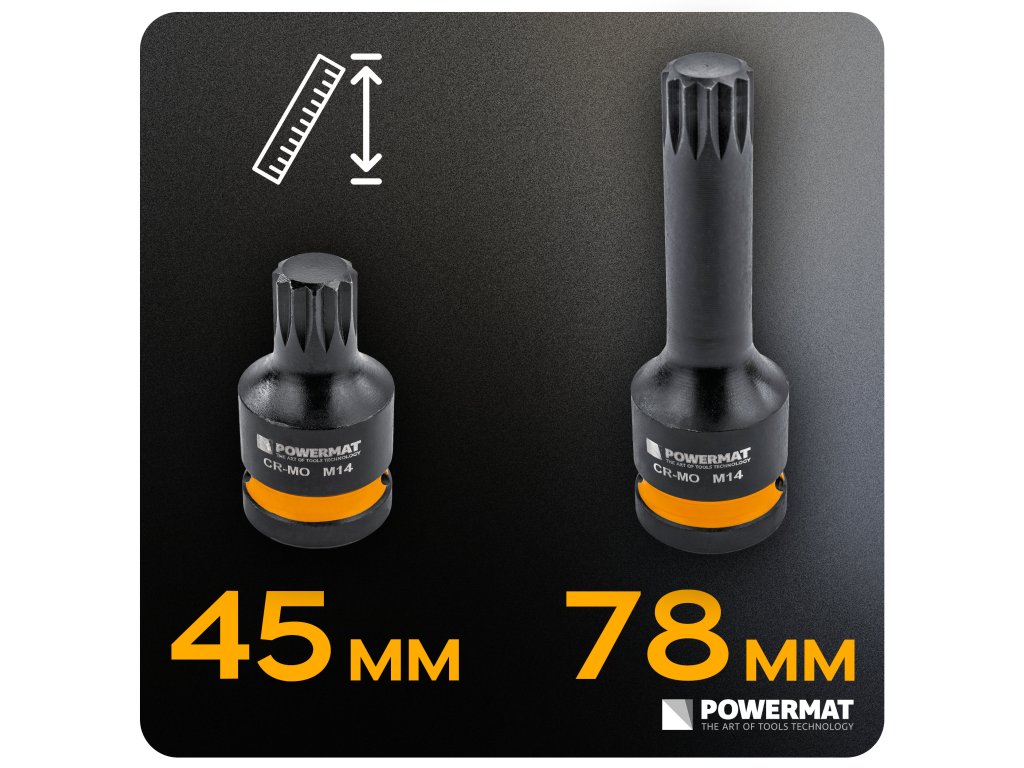 Rázové nástrčné hlavice SPLINE 1/2" PM-ZNU-1418T, sada 6ks, Powermat PM1381