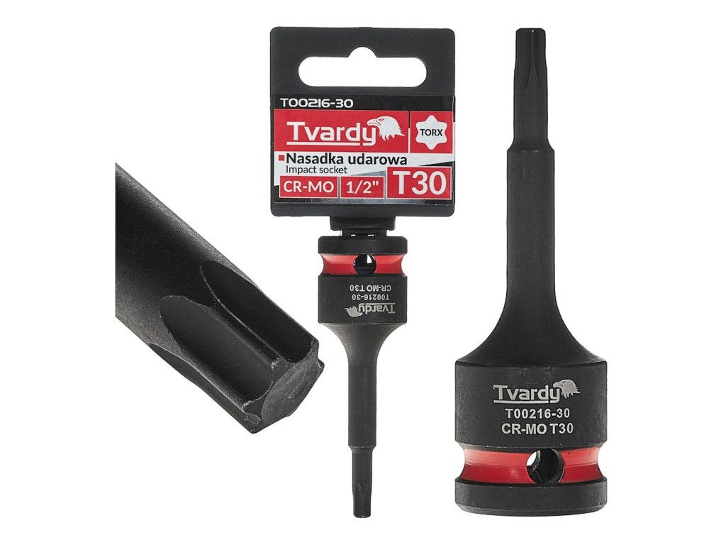 Rázový nástrčný klíč TORX 1/2" CR-MOProfesionální rázová hlavice TORX značky Tvardy je určená pro intenzivní práci s rázovými utahováky. Nezastupitelná v autoservisech, průmyslu i při montáži konstrukcí, kde se používají šrouby s profilem TORX.