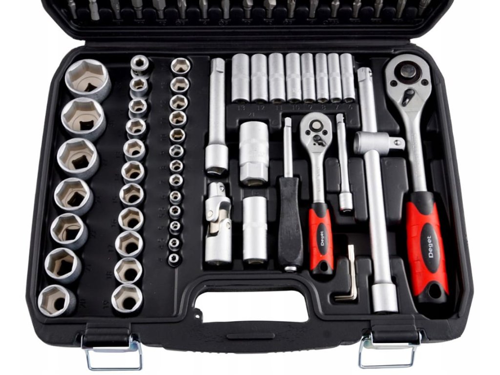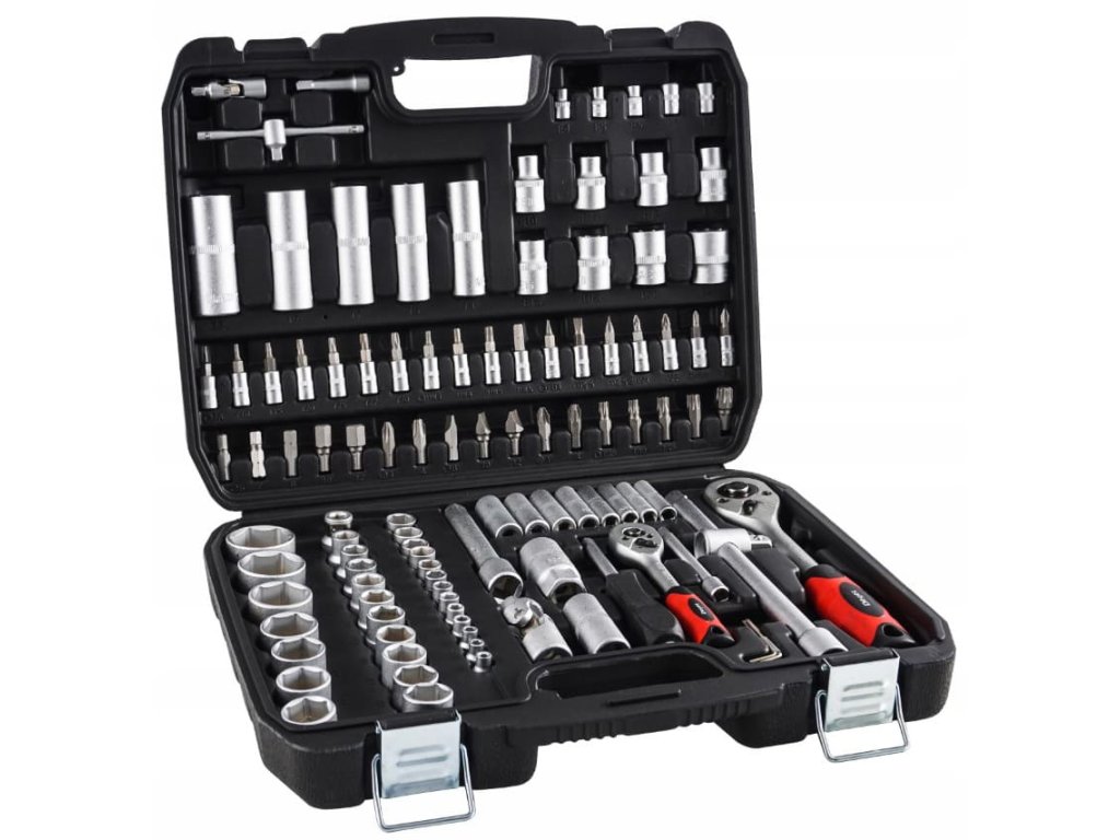 Vysoce kvalitní sada nástrčných klíčů je ideální jak pro profesionální dílnu, tak pro domácí garáž. Sada se skládá ze 108 prvků různých velikostí, což umožňuje snadné provádění různých dílenských prací. Nástrčné klíče i ráčnové nástavce jsou vyrobeny z odolné nástrojové uhlíkové oceli, díky čemuž si dlouho uchovají svůj původní vzhled. Sada je vhodná pro práci vyžadující vysoké zatížení a přesnost, a umožňuje vykonávat různé servisní činnosti spojené s utahováním a povolováním závitových spojů různých nominálních velikostí.