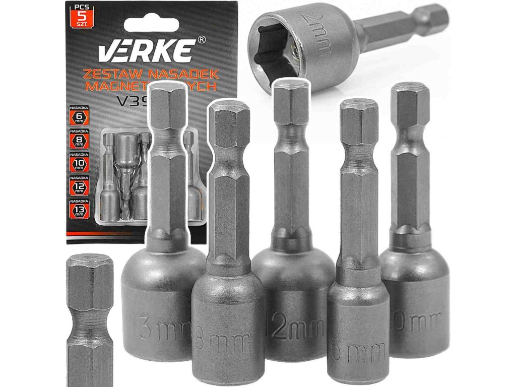 Sada nejpoužívanějších magnetických nástavců značky Verke je ideálním doplňkem pro vrtačku nebo aku šroubovák. Magnetické koncovky umožňují pevné uchycení šroubů a matic se šestihrannou hlavou, což výrazně usnadňuje práci i v hůře přístupných místech.