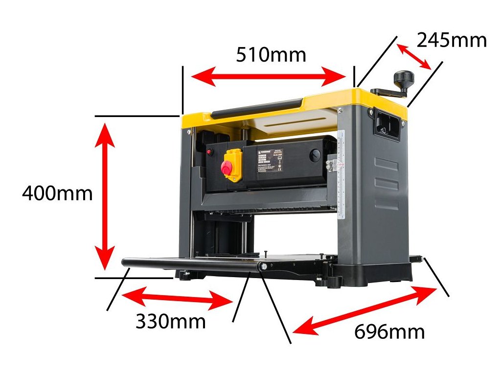 Hoblovka srovnávačka je vybavena dvěma rychlořeznými noži HSS, pracovní plochou o šířce 33 cm a rameny s maximální délkou 696 mm. Díky vysoké přesnosti, spolehlivé konstrukci a snadné ovladatelnosti je ideálním nástrojem pro efektivní a přesné opracování dřeva v každé dílně.