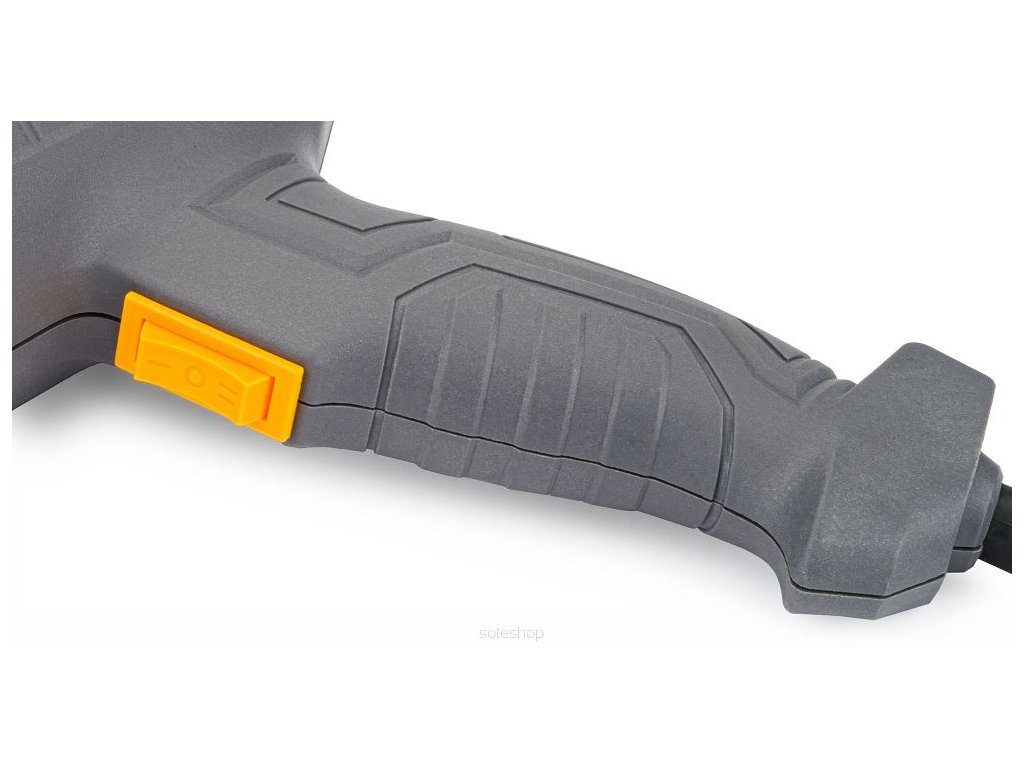 Horkovzdušná pistole má třístupňový pohodlný spínač pro nastavení teploty v rozmezí 1. stupeň - 350 °C a 2. stupeň - 600 °C.