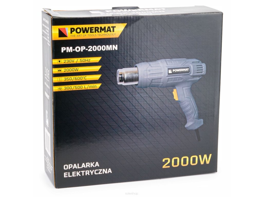 Horkovzdušná pistole POWERMAT je vynikajícím nástrojem pro kutily, profesionály a řemeslníky, ideálním pro mnoho použití. Výkon 2000 W lze manuálně regulovat s dvěma nastaveními teploty a průtoku vzduchu.
