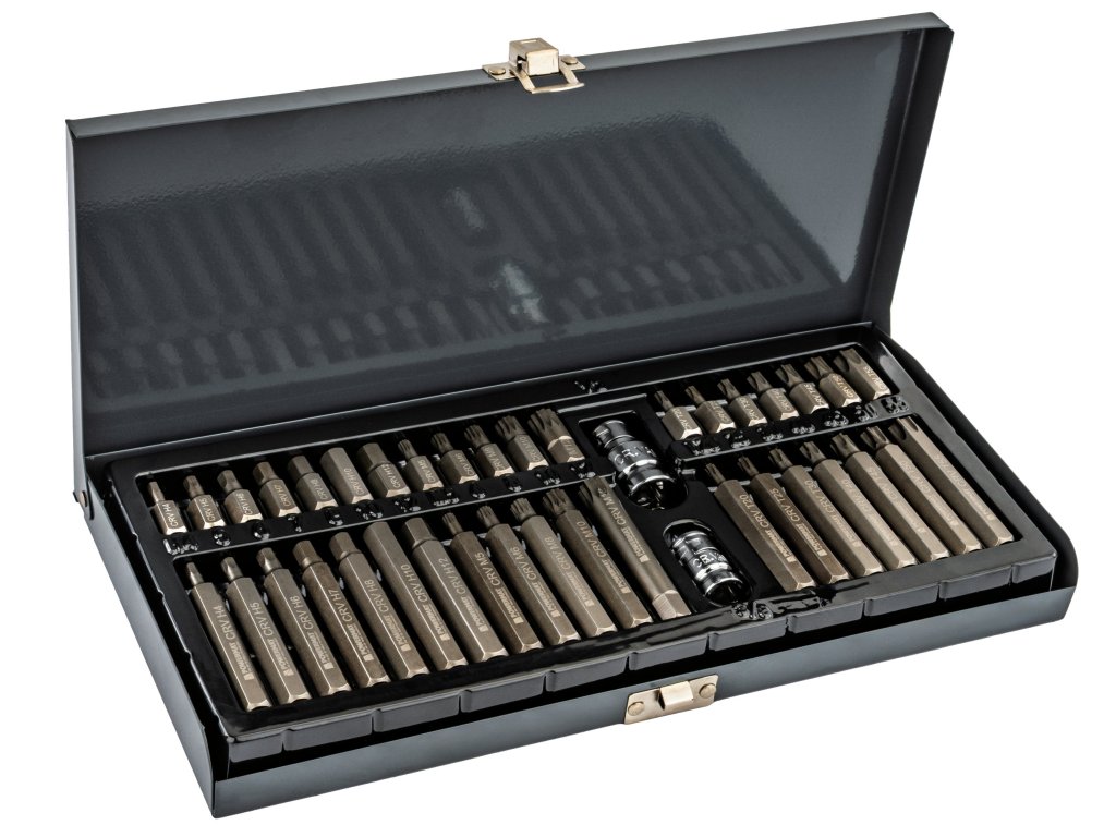 Kompletní sada nástrčných bitů určená pro práci s ráčnami, nástrčnými klíči i rázovým nářadím. Obsahuje nejpoužívanější profily HEX, TORX a SPLINE ve dvou délkách, takže zvládnete běžné servisní i montážní práce bez nutnosti dokupovat další nástavce.