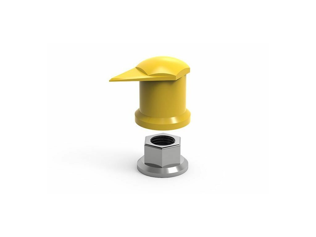- Indikace uvolnění matice: šipka na horní části krytky slouží jako vizuální ukazatel. Jakýkoliv pohyb matice je okamžitě viditelný změnou polohy šipky.
