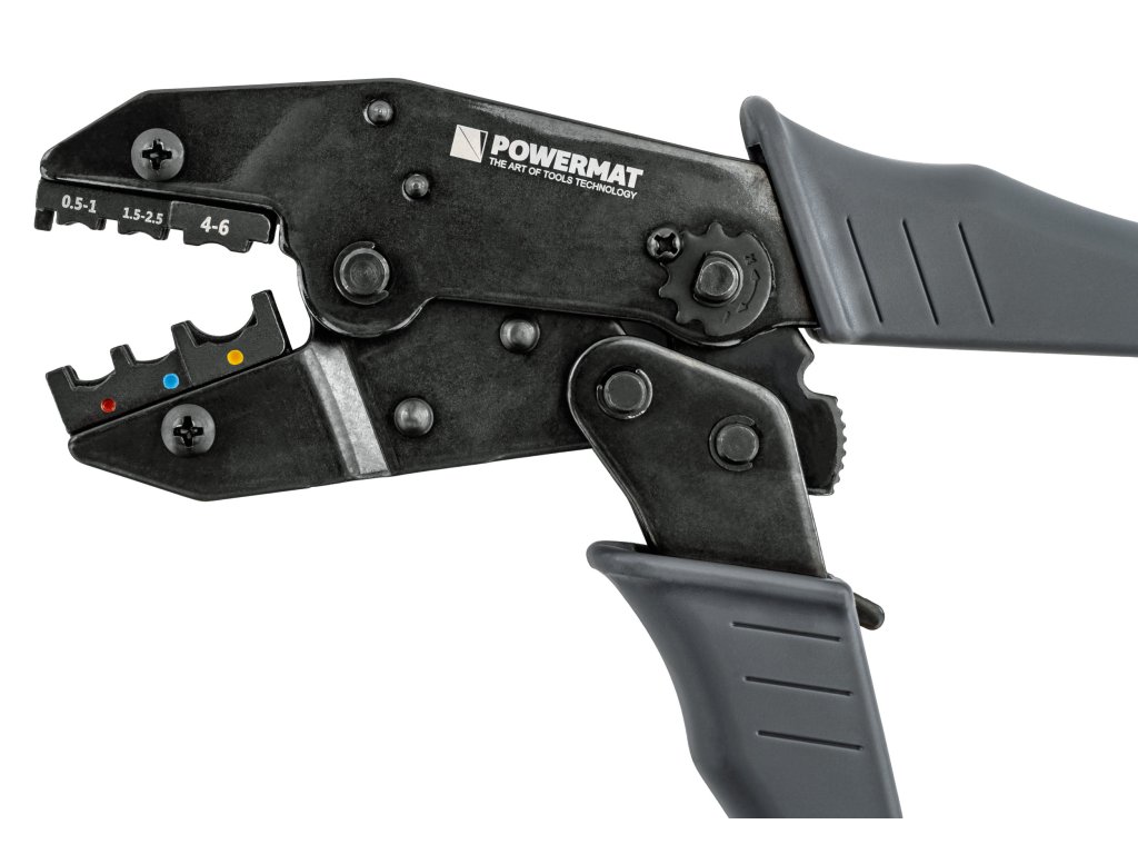 Lisovací kleště na konektory Powermat PM-ZDK-1TLisovací kleště PM-ZDK-1T jsou určeny pro přesné lisování kabelových konektorů v elektrických instalacích. Vhodné jsou pro profesionální použití i běžné domácí práce. Ráčnový mechanismus a možnost nastavení přítlačné síly zajišťují pevné, opakovatelné a bezpečné spoje vodičů.