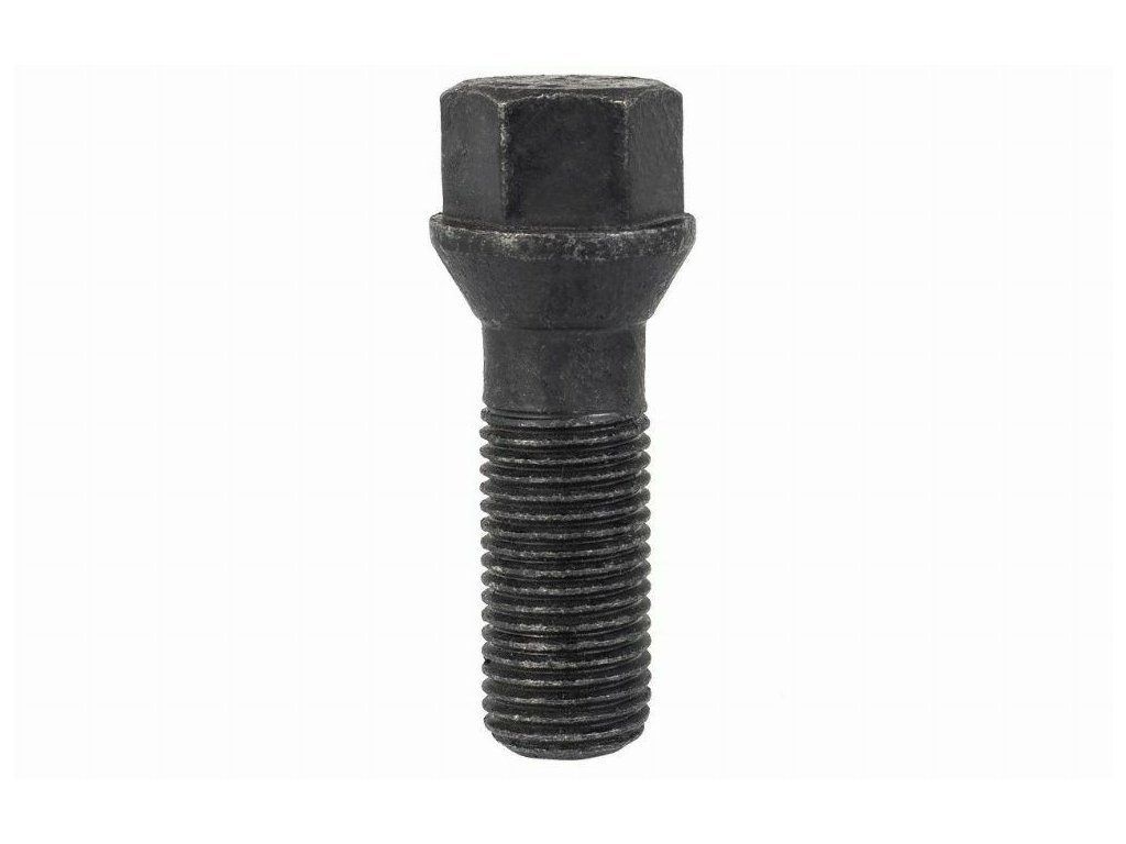 Černý šroub na kola se závitem M14x1,5, délkou závitu 35 mm a kuželovou dosedací plochou. Vhodný pro montáž ocelových disků.