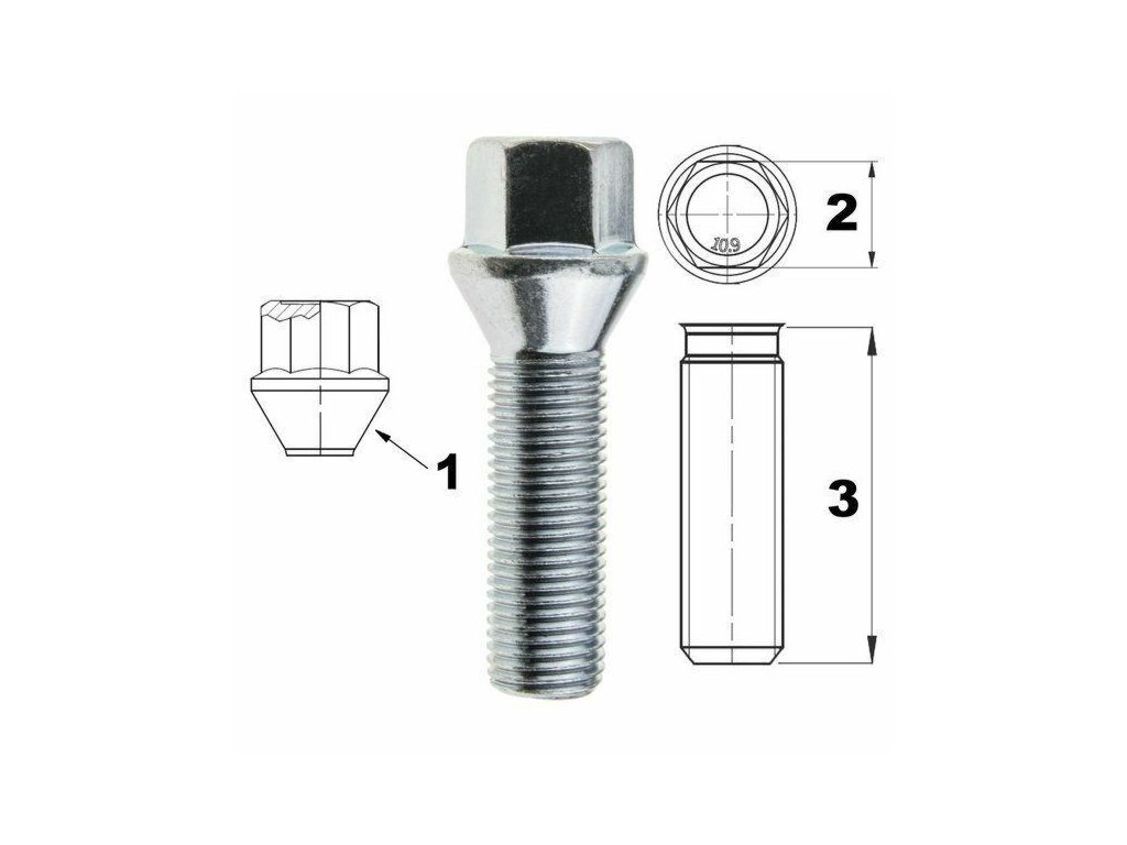 Univerzální šroub na kola se závitem M14x1,5, délkou závitu 45 mm a kuželovou dosedací plochou, vhodný pro montáž ocelových i hliníkových disků (v závislosti na modelu vozidla).