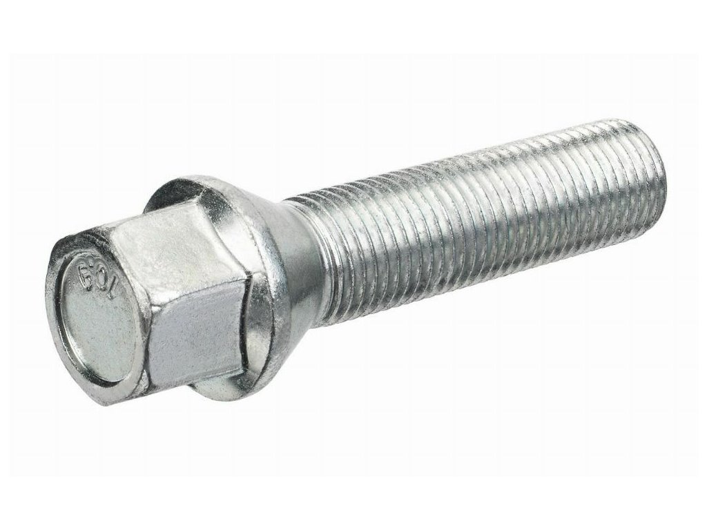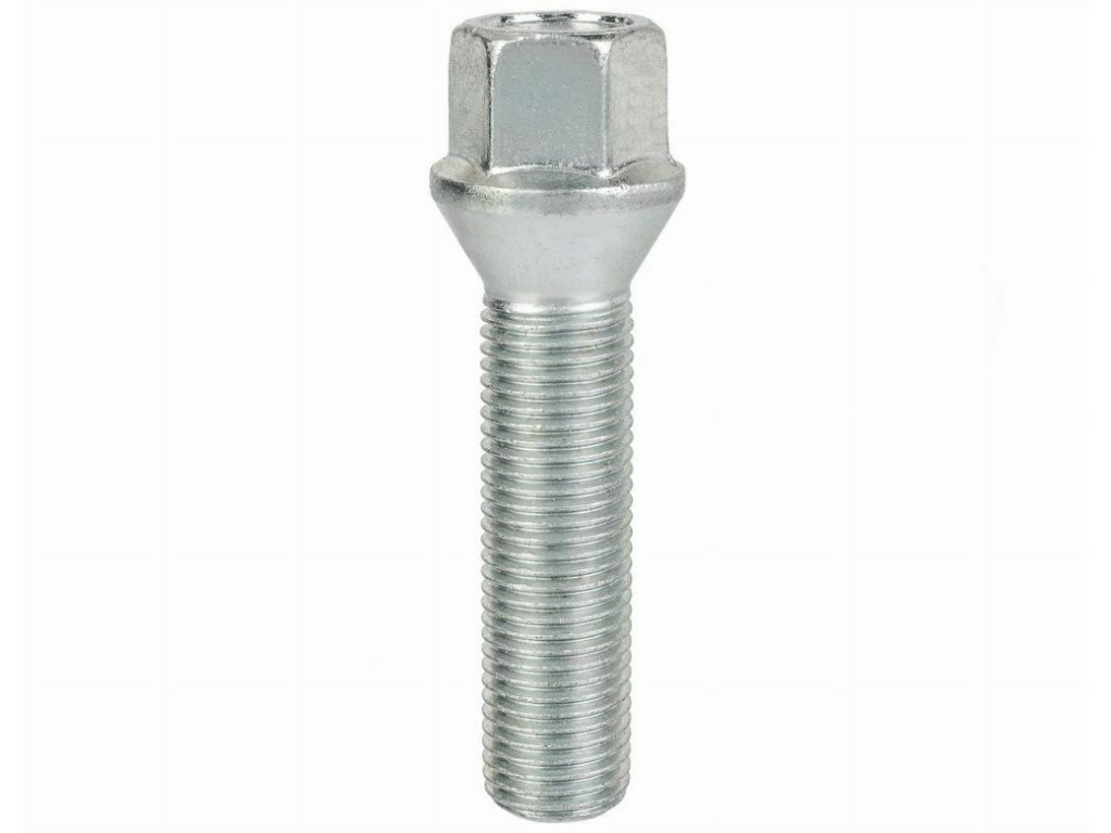Šroub na kola se závitem M14x1,5, délkou závitu 50 mm, kuželovým sedlem a šestihranem na klíč 17 mm je určen k montáži hliníkových i ocelových disků, například u vozidel Volvo C70.