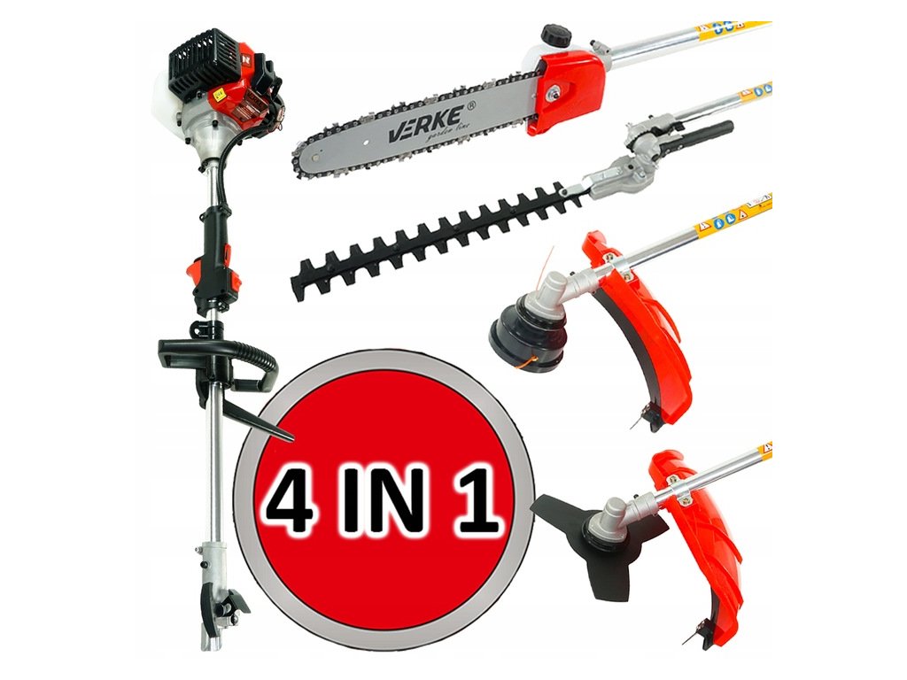 Křovinořez 4v1 je multifunkční zařízení kombinující vlastnosti křovinořezu, vyžínače křovin, prořezávací pily na větve a nůžek na živý plot. Tento křovinořez je ideální tam, kde se nelze dostat tradiční sekačkou. Perfektně se hodí pro sečení vysoké trávy i pro vyřezávání plevelů a tvrdých křovin. Motor nové generace zaručuje spolehlivé startování a nepřerušovanou práci. Křovinořez je vybaven antivibračním systémem snižujícím vibrace a nosnými popruhy, což zajišťuje maximální pohodlí při sečení i v těžko dostupných místech. Profilovaná nastavitelná rukojeť a pohodlné úchyty umožňují snadné a přesné vedení zařízení a pohodlnou práci. Funkce prořezávací pily zajišťuje komfort a bezpečnost při údržbě ovocných stromů a prosvětlování jejich korun. Umožňuje prořezávání stromů přímo ze země. Nůžky na živý plot zajišťují pohodlné a rychlé zastřihování vysokých a širokých živých plotů. Skvěle se hodí jak při práci přímo u živého plotu, tak i z určité vzdálenosti nad překážkami.