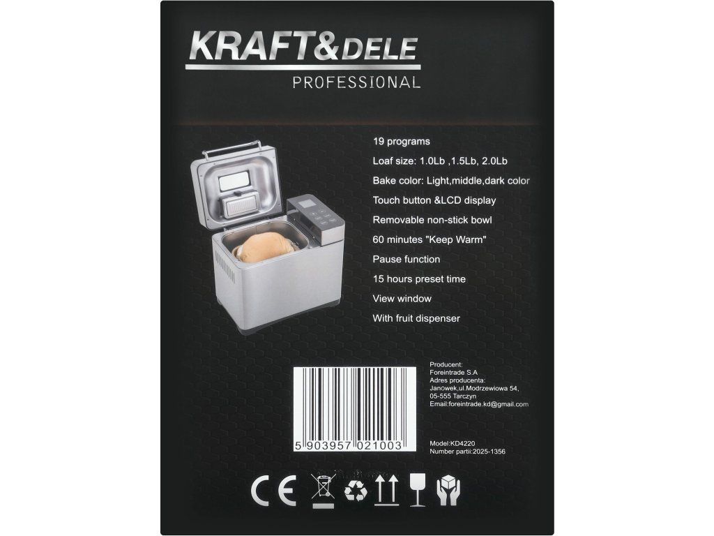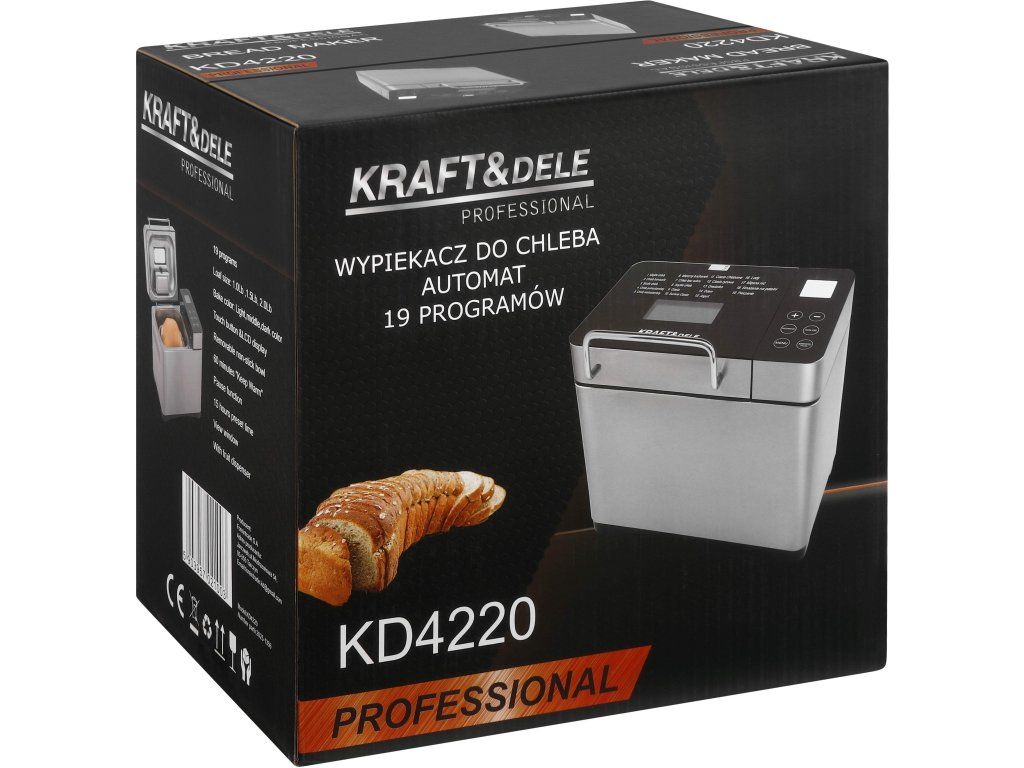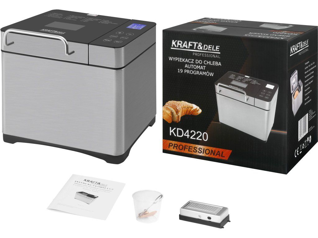 Domácí pekárna – 19 programů Kraft&Dele KD4220Domácí pekárna KD4220 značky Kraft&Dele je moderní zařízení určené pro automatickou přípravu domácího pečiva i dalších pokrmů. Umožňuje pohodlné pečení chleba různých druhů, ale také přípravu těsta, džemu, jogurtu, zmrzliny či rýže, takže najde využití v každé kuchyni.