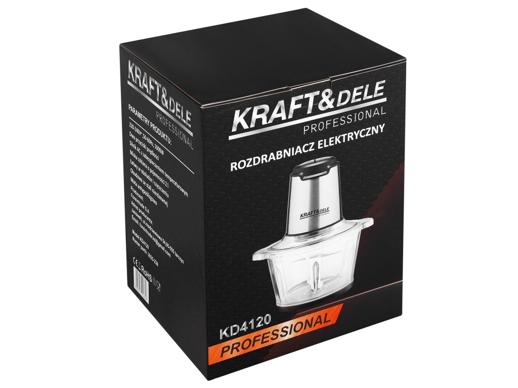 Elektrický drtič Kraft&Dele KD4120 je univerzální kuchyňské zařízení, které usnadňuje každodenní přípravu jídel. Během několika okamžiků naseká maso, zeleninu, ovoce či ořechy, a to rychle a bez námahy.