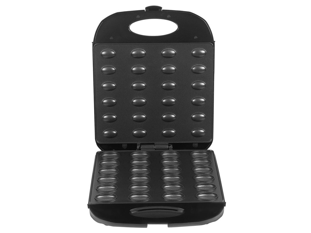 Zařízení umožňuje upéct až 24 polovin oříšků najednou, takže zvládnete připravit větší množství sušenek v krátkém čase. Díky odolné konstrukci a certifikaci CE je používání bezpečné, zatímco výkonné topné spirály zaručují rovnoměrné propečení.