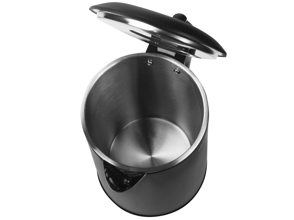 Bezpečnost zvyšují protiskluzové nožičky, stabilní konstrukce a uzavřená rukojeť, chránící ruce před horkou párou. Díky širokému nerezovému výlevnému zobáčku se sítkem je nalévání pohodlné a čisté. Otevírání víka probíhá stiskem tlačítka, což umožňuje hygienické plnění vodou jednou rukou.