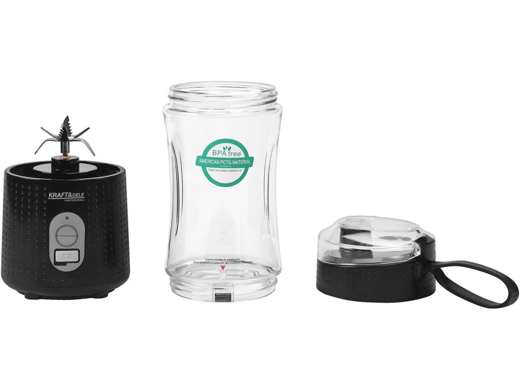 Šejkr akumulátorový 380 ml černý, USB-C, 2×3000 mAh, Kraft&Dele KD4170