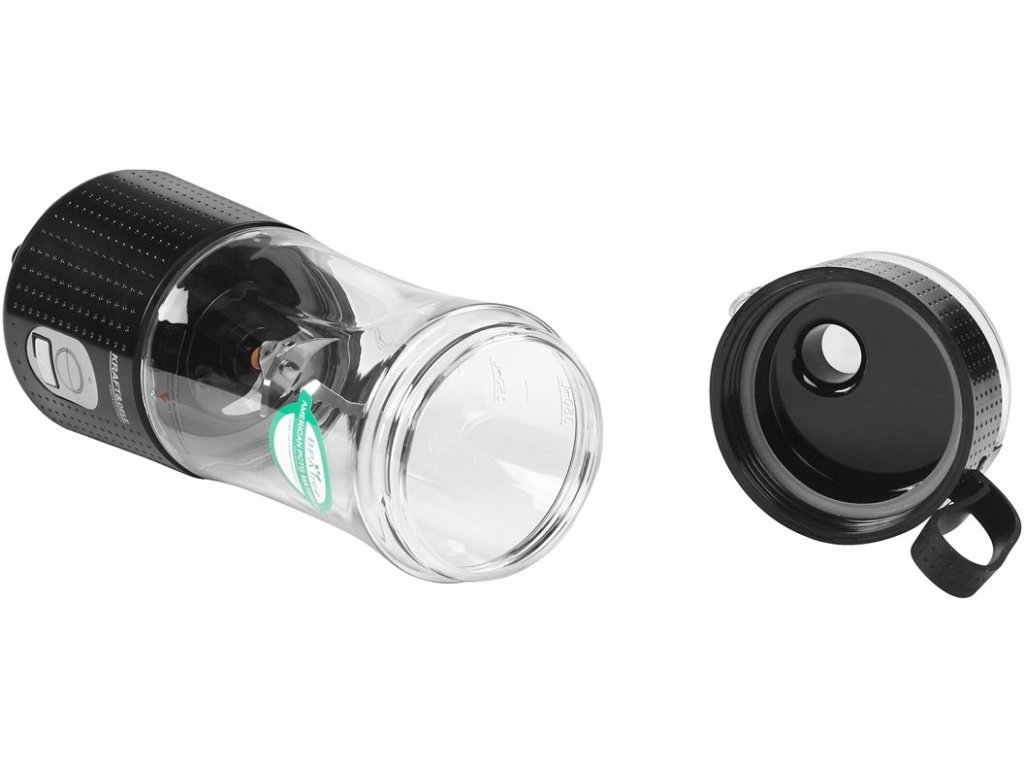 Odolné tělo z potravinářského plastu PCTG zajišťuje bezpečné používání a ocelové čepele z nerezové oceli 304 garantují efektivní sekání ovoce, zeleniny i ledu. Víčko s bezpečnostním zámkem chrání náustek před znečištěním a zároveň zabraňuje nechtěnému rozlití nápoje během přenášení.