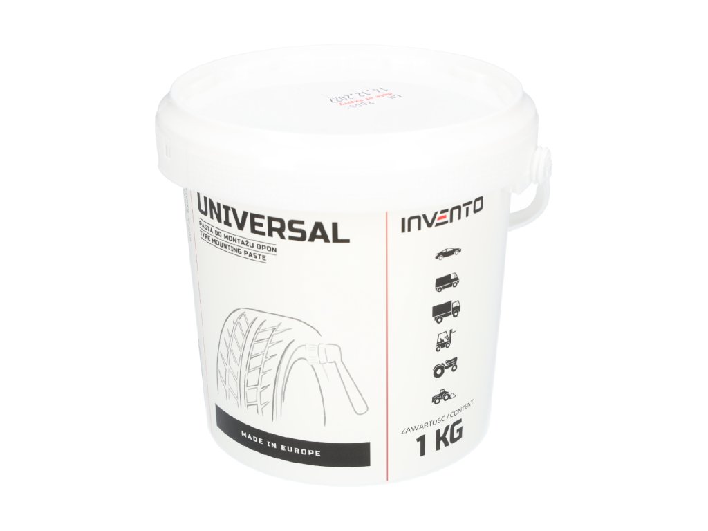 Invento Universal je víceúčelová montážní pasta určená pro profesionální i běžné použití v pneuservisech, které pracují s různými typy pneumatik. Zajišťuje hladký, rychlý a bezpečný proces montáže i demontáže pneumatik, a to bez poškození ráfku či pneumatiky.