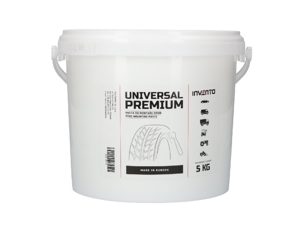Invento Premium je vysoce výkonná univerzální montážní pasta, určená pro profesionální použití ve všech typech pneuservisů. Vyznačuje se tvrdší konzistencí, vysokou přilnavostí a bezpečností vůči gumě a kovu. Díky svému univerzálnímu složení je ideální volbou pro montáž a demontáž pneumatik všech druhů vozidel.
