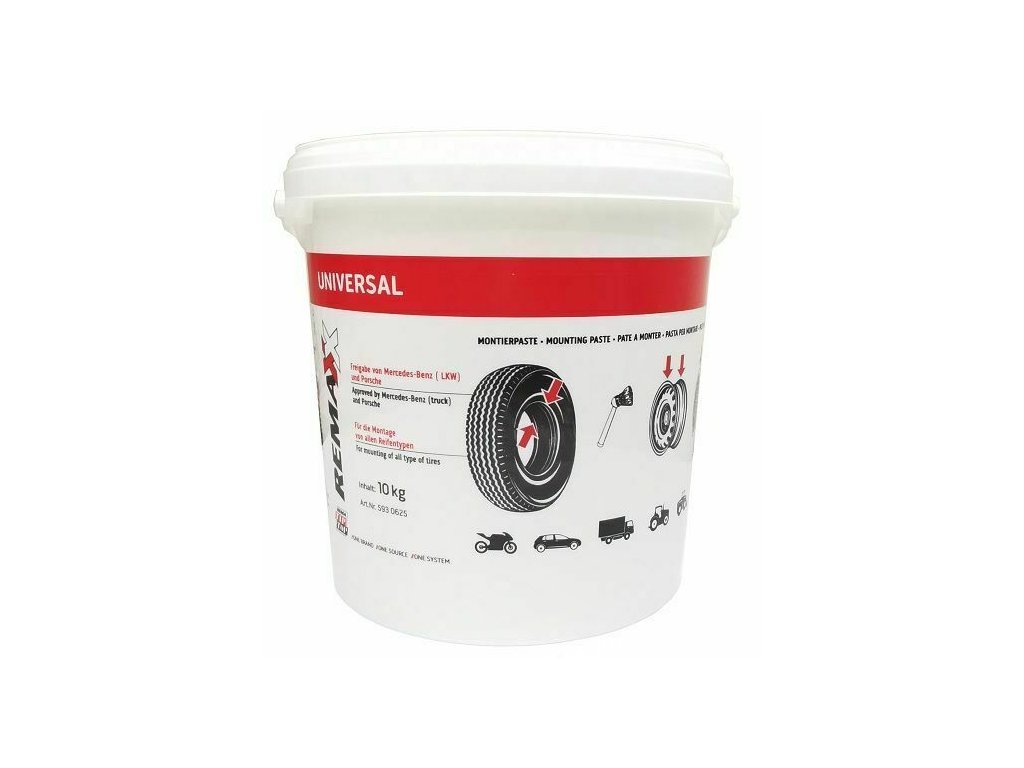 Vysoce kvalitní německá montážní pasta Remaxx Universal je určena pro montáž a demontáž všech typů a velikostí pneumatik – osobních, dodávkových, nákladních, autobusových, motocyklových, zemědělských i velkoobjemových. Na trhu je dostupná více než 30 let a patří mezi nejčastěji používané přípravky v pneuservisech.