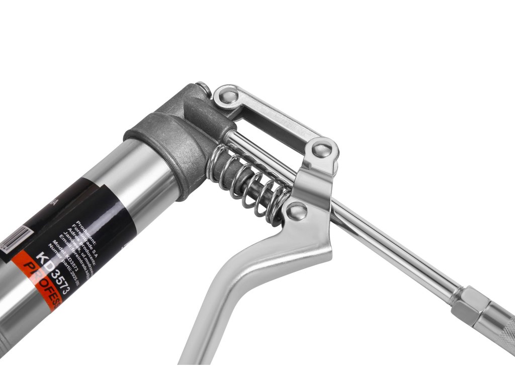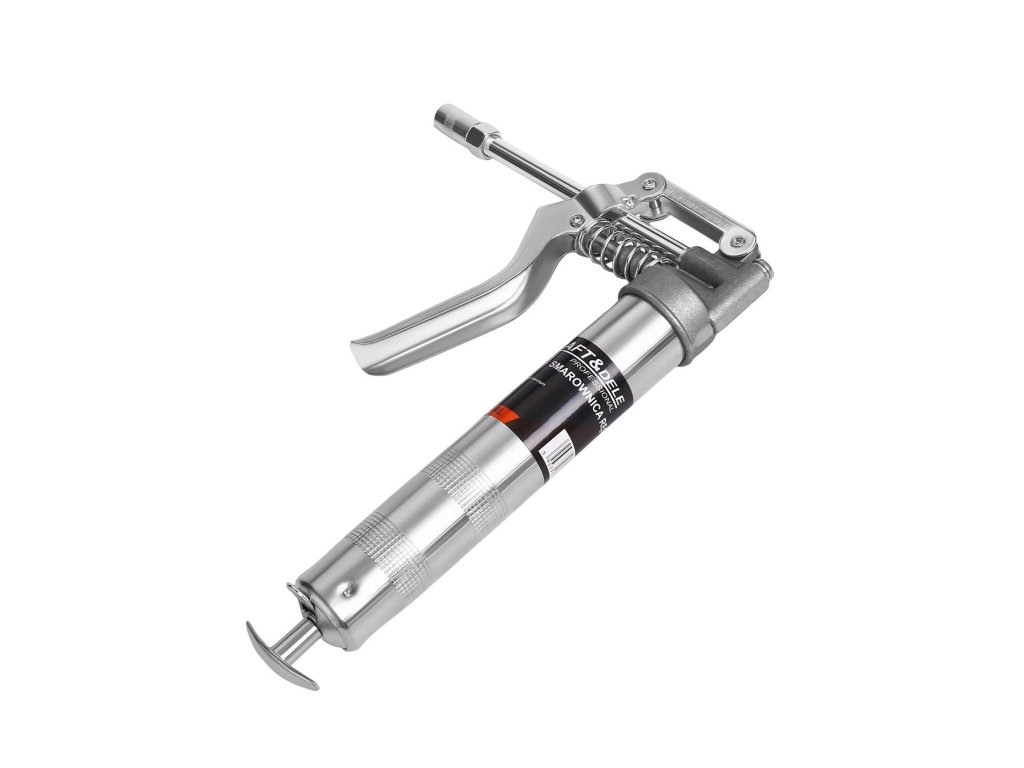 Pevné ocelové tělo a ergonomická rukojeť zajišťují dlouhou životnost a pohodlné používání. Maznice je odolná proti korozi a připravená k práci i v náročných podmínkách.