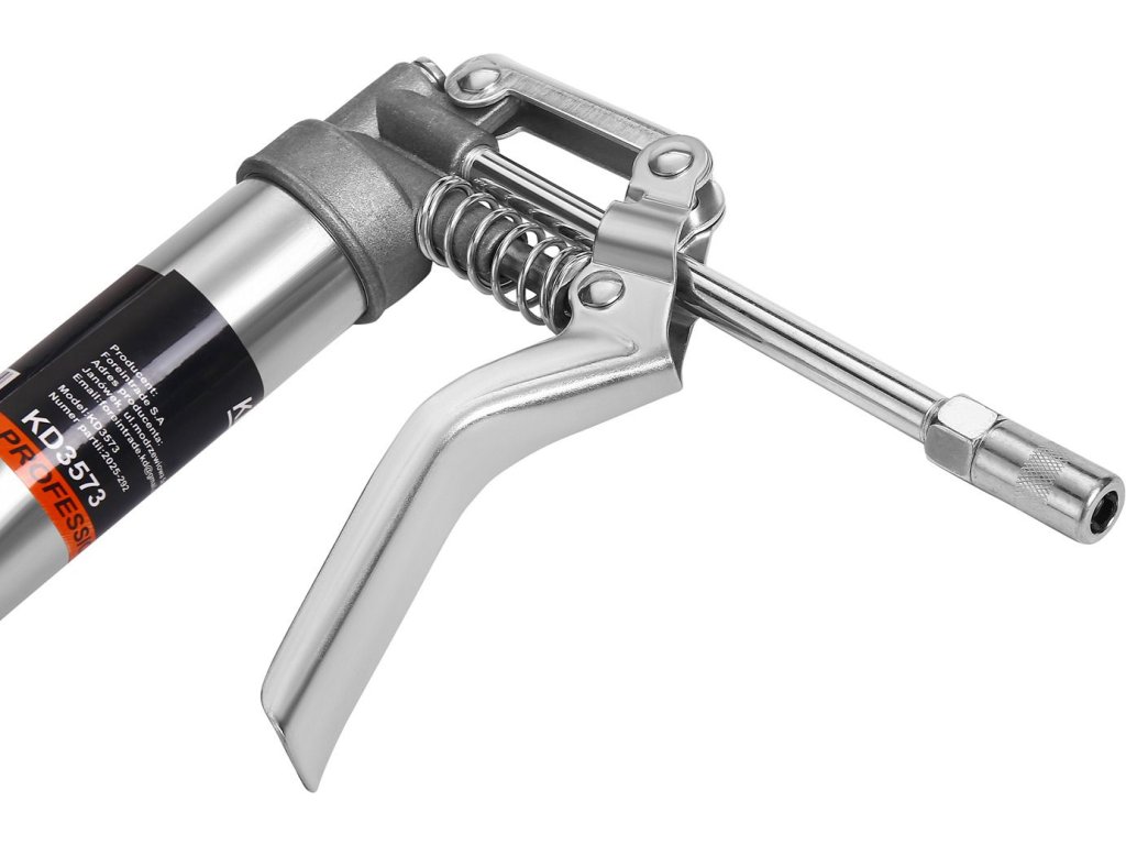 Ruční maznice KD3573 o objemu 120 ml je kompaktní a spolehlivý nástroj určený k přesné aplikaci maziva i v těžko dostupných místech. Díky praktické konstrukci a úzké dávkovací trysce umožňuje rychlé a čisté mazání ložisek, čepů, kloubů a dalších mechanických součástí.