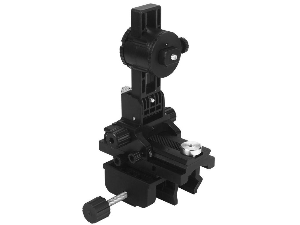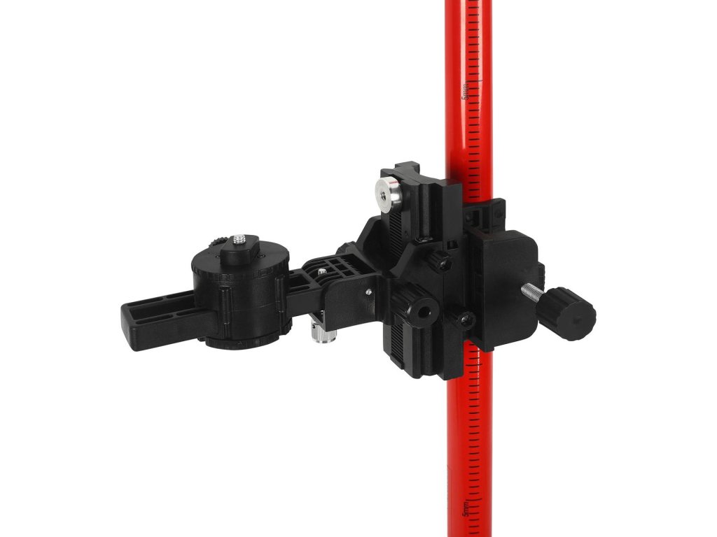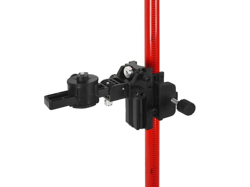 Rozpěrný systém umožňuje jednoduché upevnění tyče mezi podlahu a strop bez nutnosti vrtání nebo použití dalších držáků. Standardní závit 1/4" zajišťuje kompatibilitu s většinou laserových vodováh dostupných na trhu.