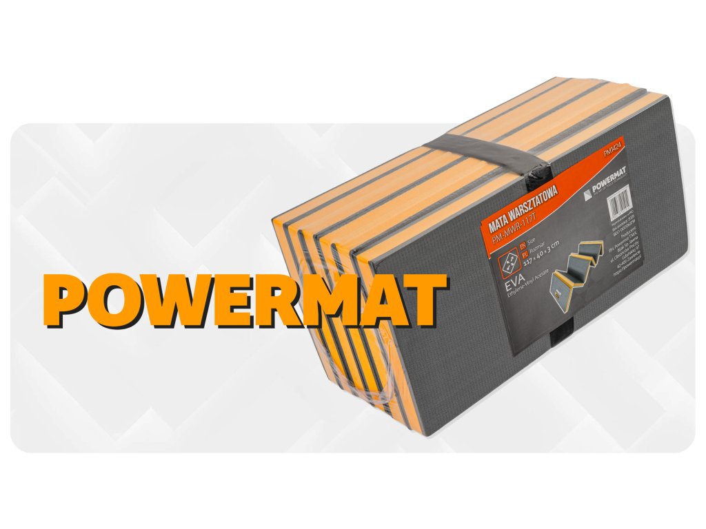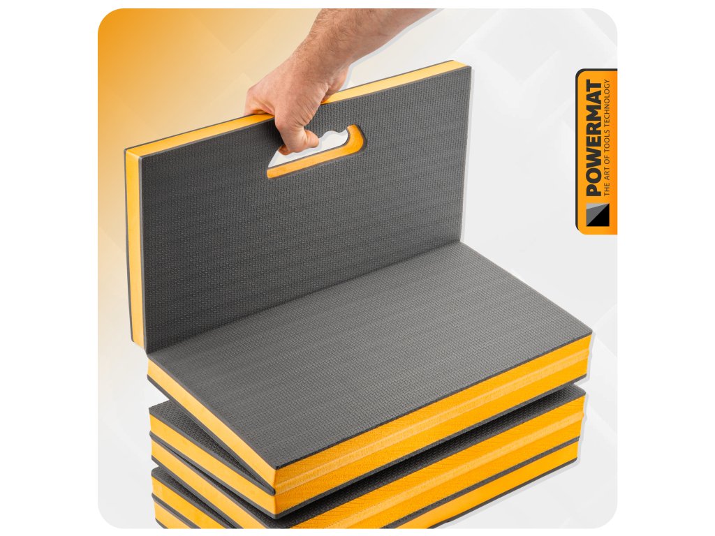 Dílenská podložka Powermat PM-MWR-117T je vhodná jako ochranná podložka pod kolena, sedátko nebo dílenské lehátko. Uplatní se při mechanických, montážních, renovačních, zahradních i domácích pracích a také v terénu.