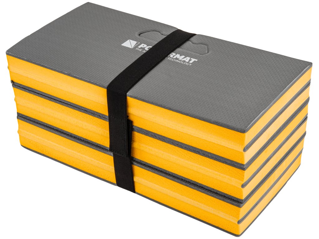 Podložka je vyrobena z EVA pěny o tloušťce 30 mm, která zajišťuje pružnost, tlumení tlaku i vibrací. Šestidílná skládací konstrukce umožňuje snadné přizpůsobení povrchu a poskytuje větší pohodlí při práci.
