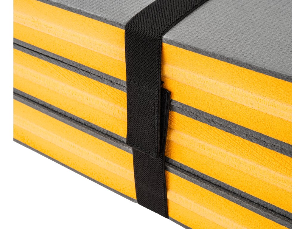 Součástí balení je praktický pásek na suchý zip, který umožňuje rychlé smotání podložky do ruličky a její bezpečné zajištění pro přepravu nebo skladování.