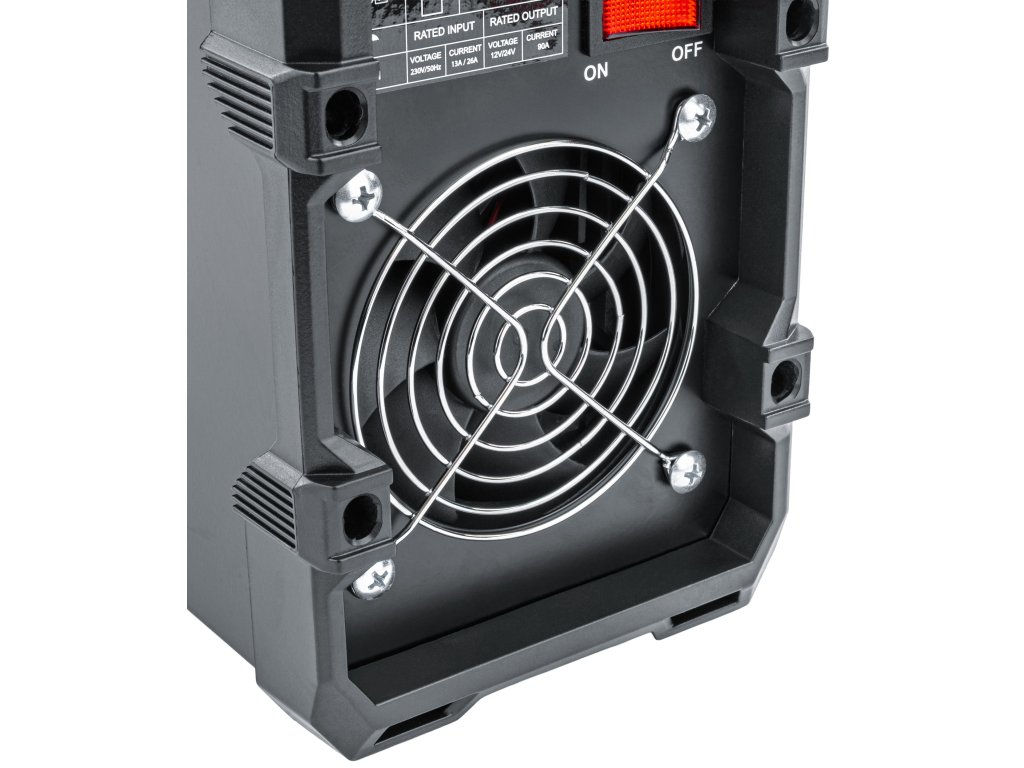 - Vysoce výkonný invertorový nabíječ 12/24 V s mikroprocesorovým řízením automaticky přizpůsobuje napětí a proud podle stavu akumulátoru, čímž zajišťuje stabilní nabíjení a prodlužuje životnost baterie.