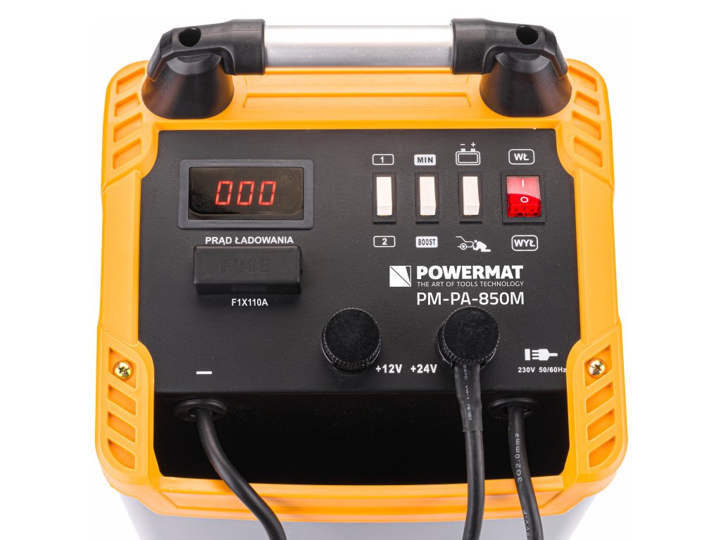 Nabíječka autobaterií – startovací vozík Powermat PM-PA-850M je profesionální zařízení určené k nabíjení a startování akumulátorů 12 V a 24 V. Díky vysokému výkonu, robustní konstrukci a funkci rychlého nabíjení je ideální pro autoservisy, dílny i domácí garáže.