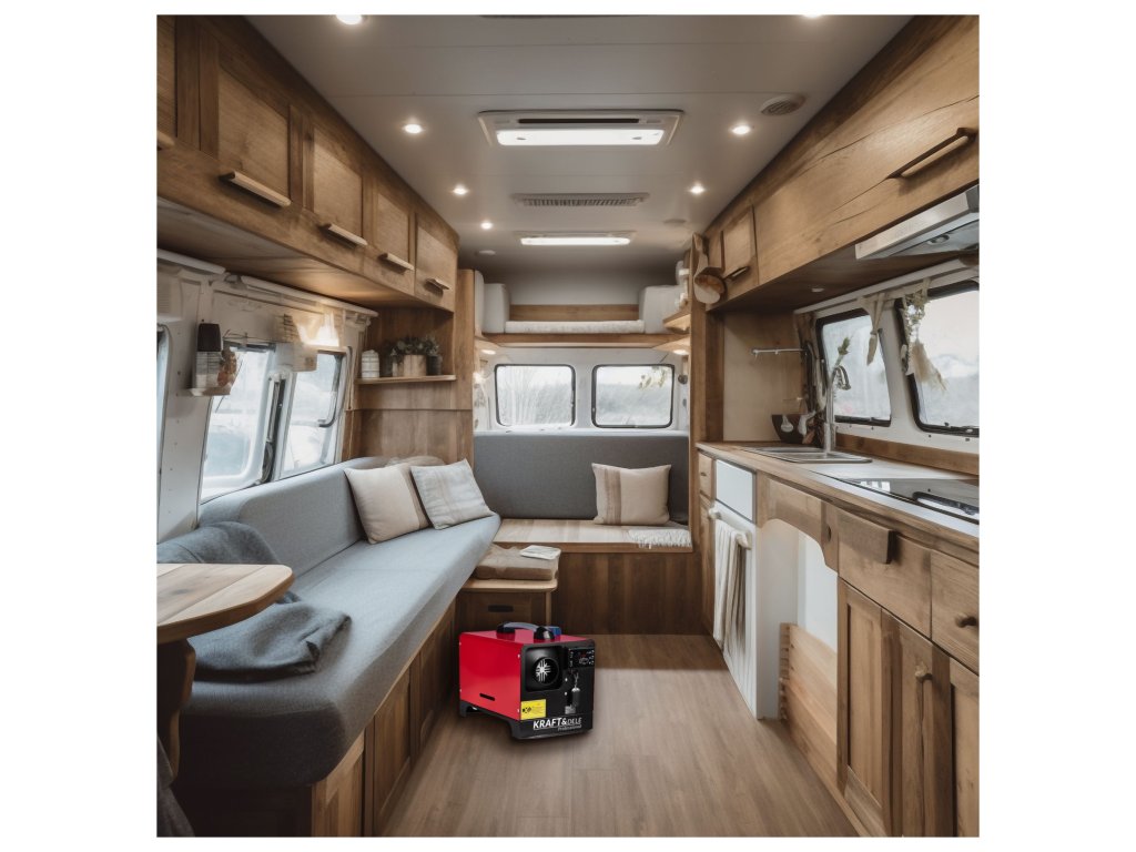 - Uzavřená spalovací komora – spaliny se nedostávají ven, což umožňuje použití v uzavřených prostorách, jako jsou vozidla či karavany.
