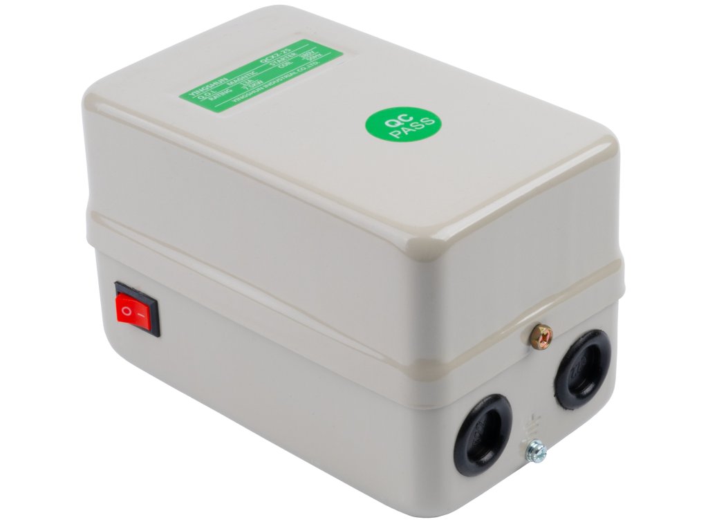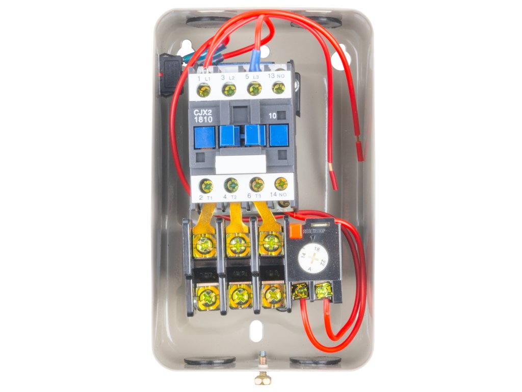 - Bezpečné spínání a ochrana motoru – stykač zajišťuje stabilní provoz kompresoru a chrání jeho motor před přetížením.