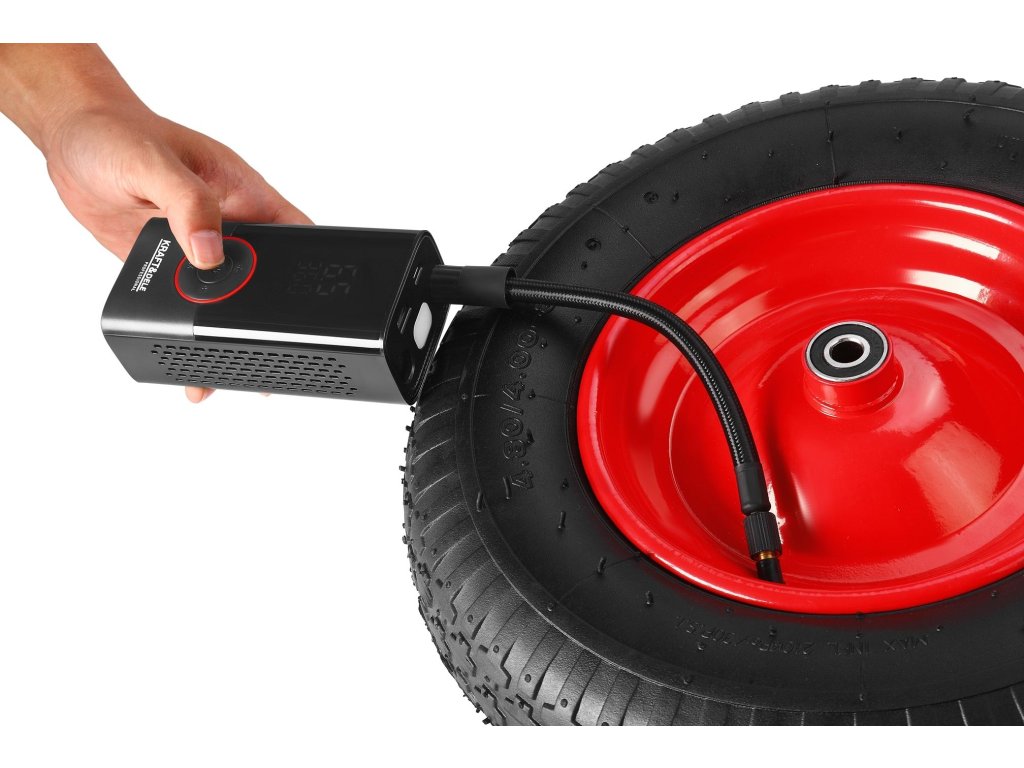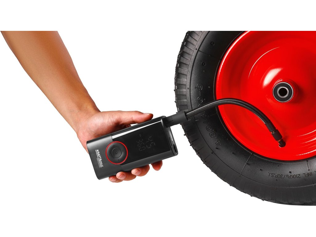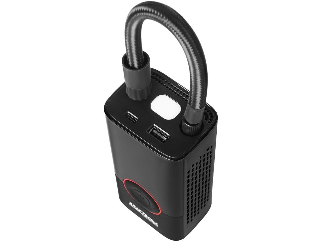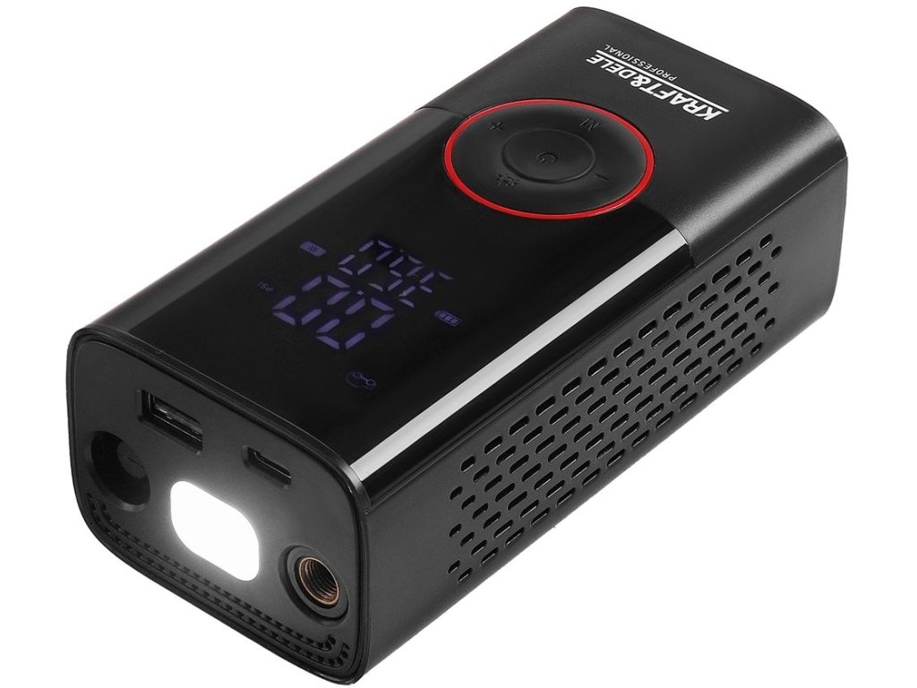 Model Kraft&Dele KD5499 je moderní přenosný akumulátorový kompresor, určený pro rychlé a pohodlné huštění pneumatik, míčů, matrací či jiných nafukovacích doplňků. Díky vestavěnému akumulátoru s celkovou kapacitou 4000 mAh a integrované LED svítilně je ideálním pomocníkem do dílny, auta i na cesty.