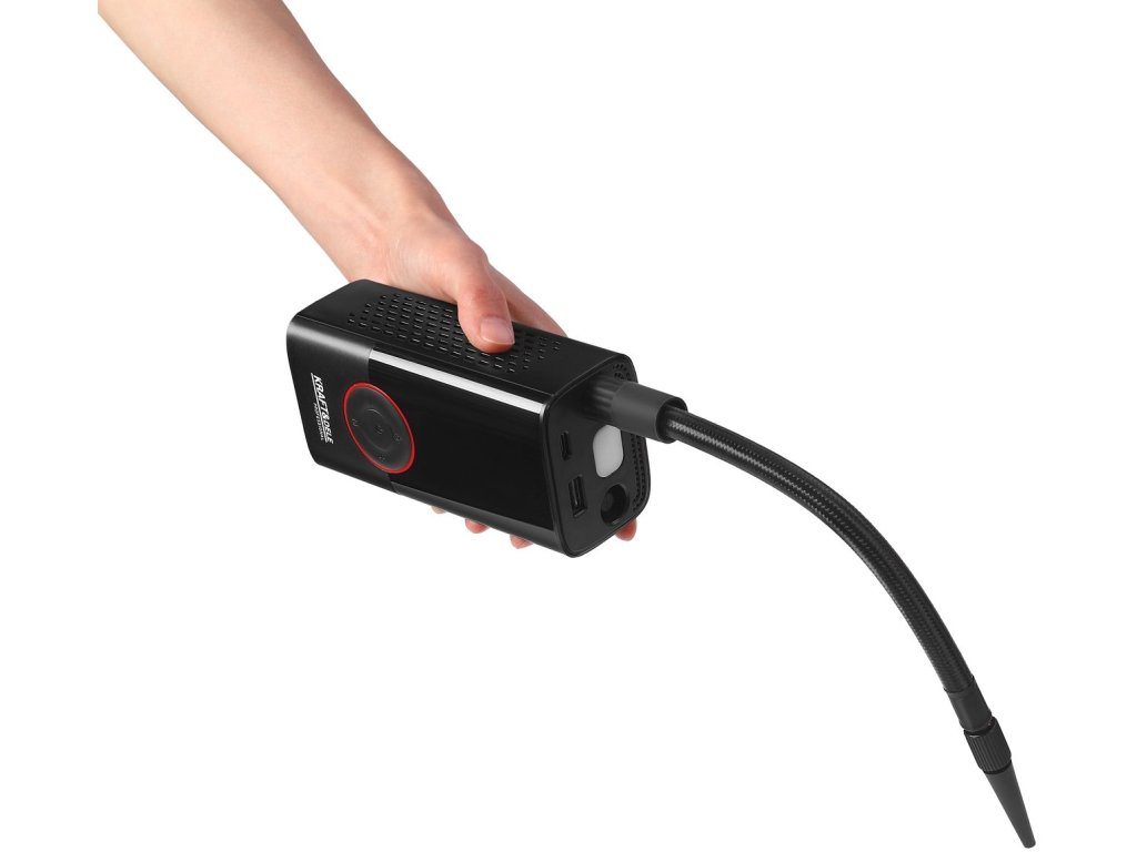 Kompresor je vybaven přehledným LCD displejem, který zobrazuje tlak v jednotkách PSI, BAR, KPA a KG/CM². Funkce automatického vypnutí po dosažení nastaveného tlaku zaručuje bezpečnost a pohodlí při používání. Díky kompaktním rozměrům, tichému chodu (pouze 60 dB) a nabíjení přes USB-C je zařízení maximálně mobilní a vždy připravené k použití.