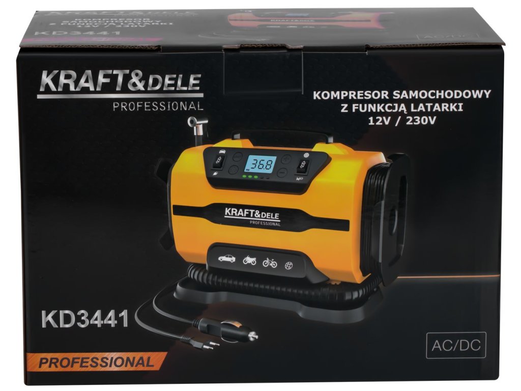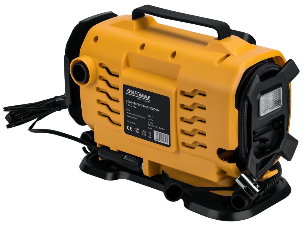 Automobilový kompresor 12V/230V 140W s LED svítilnou, Kraft&Dele KD3441