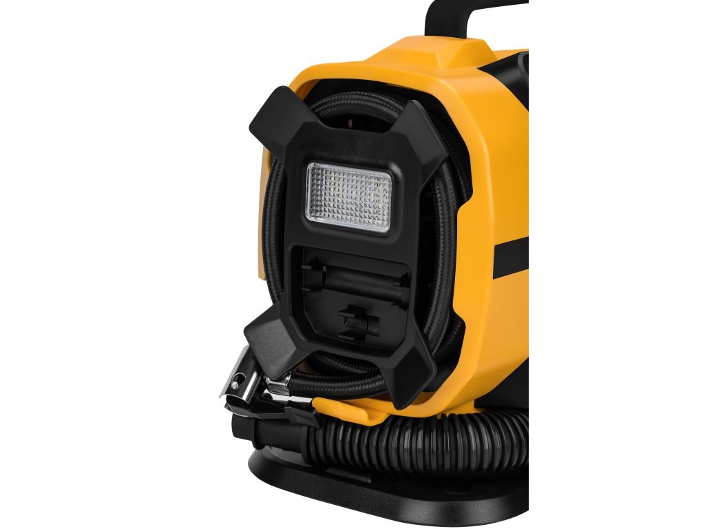 Vestavěná LED svítilna usnadňuje práci v noci a na špatně osvětlených místech. Praktický přepínač zdroje napájení umožňuje rychlé nastavení, a funkce foukání je ideální při nafukování větších předmětů.