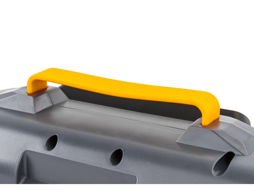Kompaktní konstrukce se zabudovanými úložnými prostory na kabely a příslušenství usnadňuje skladování i přepravu.
