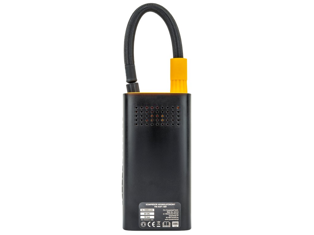 Kompresor automobilový akumulátorový POWERMAT PM-KAP-150TKompaktní a výkonný akumulátorový kompresor POWERMAT PM-KAP-150T je ideální pro huštění pneumatik automobilů, motocyklů, jízdních kol i sportovního vybavení. Díky vestavěné baterii umožňuje plně mobilní provoz bez nutnosti trvalého připojení k síti.
