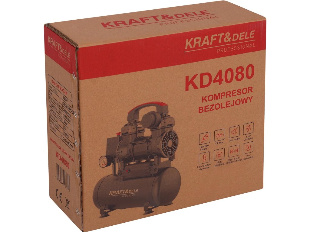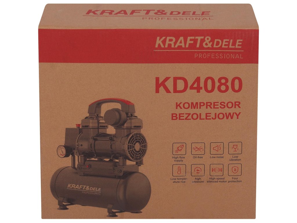Bezolejový kompresor Kraft&Dele KD4080 je lehké a kompaktní zařízení, které spojuje výkon s maximálním pohodlím při používání. Skvěle se hodí jak do domácí dílny, tak i pro profesionální práce, kde je důležitá mobilita a spolehlivost.