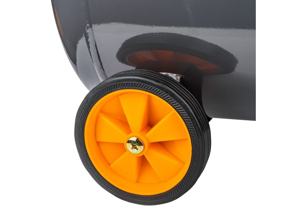 Díky robustním kolům a praktickému transportnímu madlu lze kompresor snadno přemisťovat.