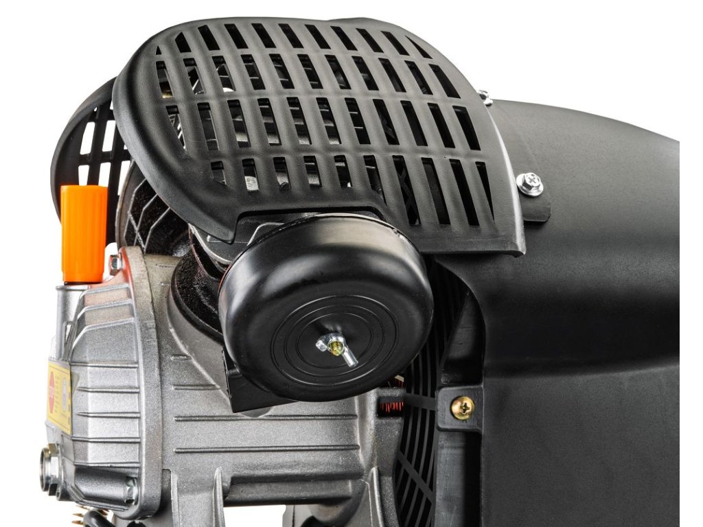 Kompresor dosahuje maximálního tlaku 8 bar díky výkonné olejové pístové jednotce, která zajišťuje efektivní průtok vzduchu 530 l/min.