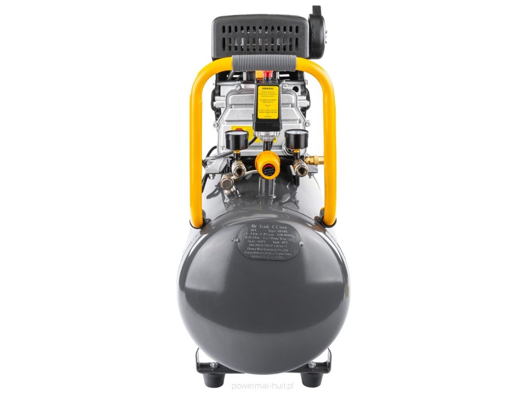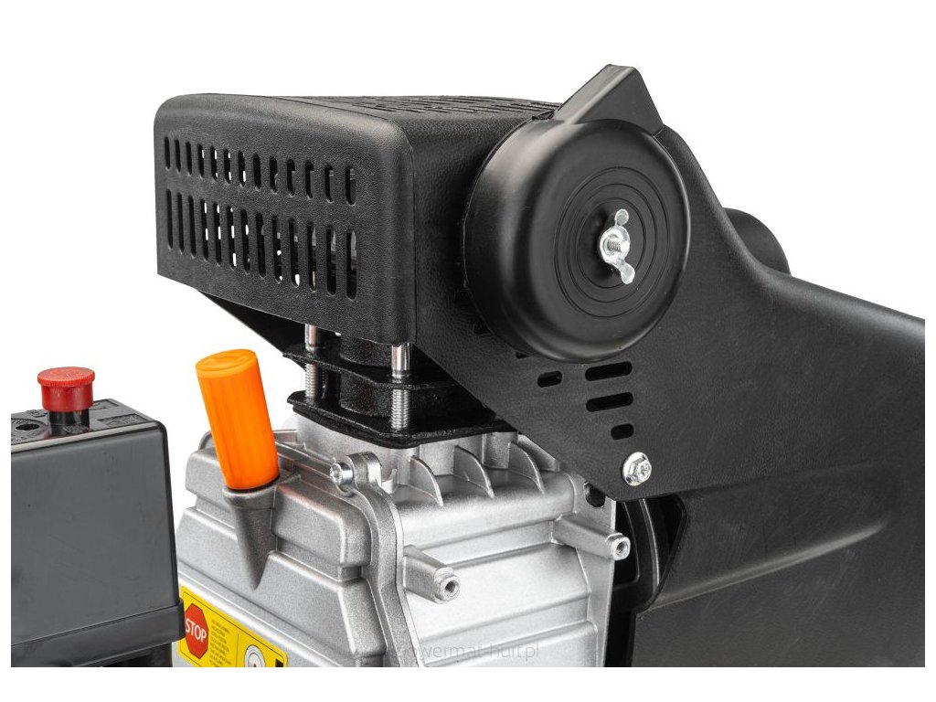 - Výkonný kompresor: Jednoválcový kompresor zajišťuje tlak v nádrži o hodnotě 8 barů a efektivní výkon na úrovni 206 l/min. Kompresor je poháněn elektrickým motorem o výkonu 1,85 kW / 2,5 HP.