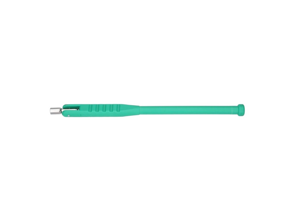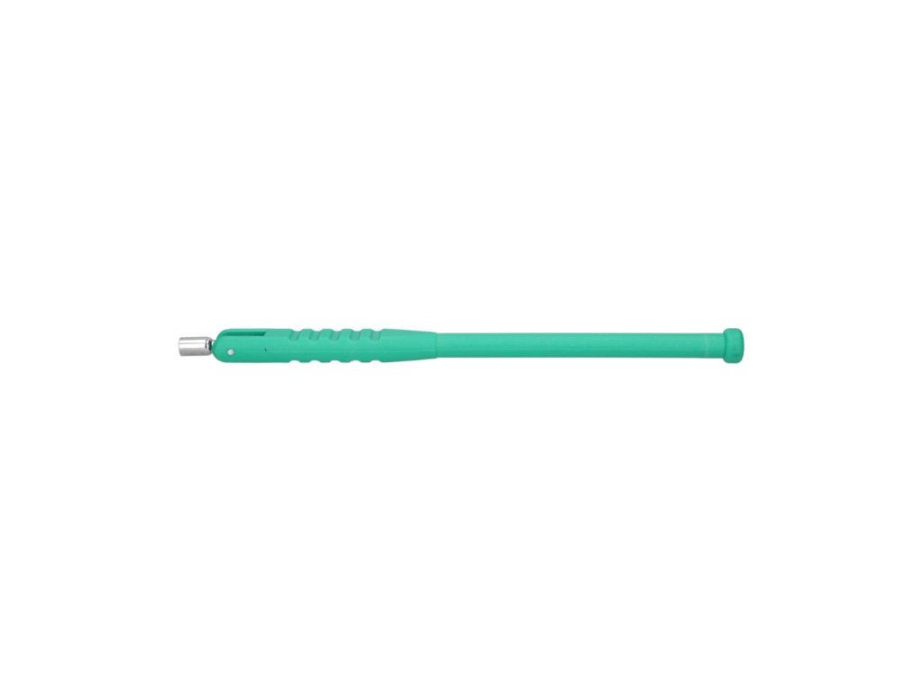 Montážní páka pro instalaci gumových ventilků do bezdušových kol osobních a dodávkových automobilů. Vybavena plastovým držadlem v zelené barvě a šroubovákem pro pružinové vložky, který je umístěn v rukojeti. Tělo páky je navrženo tak, aby chránilo ráfek před poškozením a poškrábáním, zatímco kovová koncovka na ventilek umožňuje snadnou manipulaci při montáži.