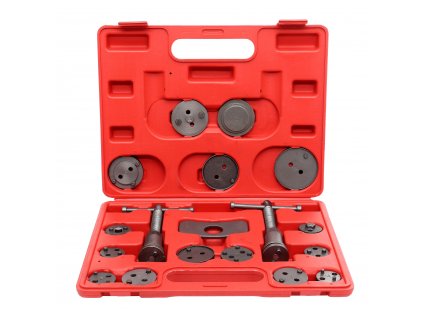 Profesionální sada GEKO G02540 obsahuje18 elementů určených k stlačení brzdových pístků kotoučových brzd.
