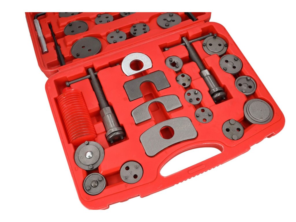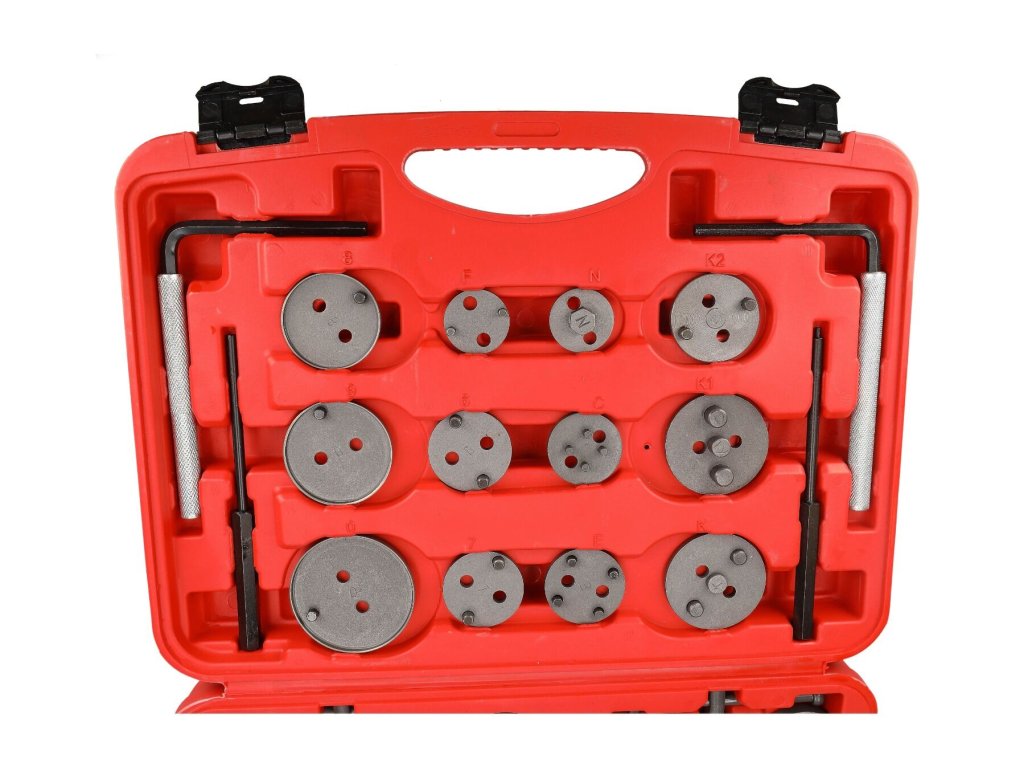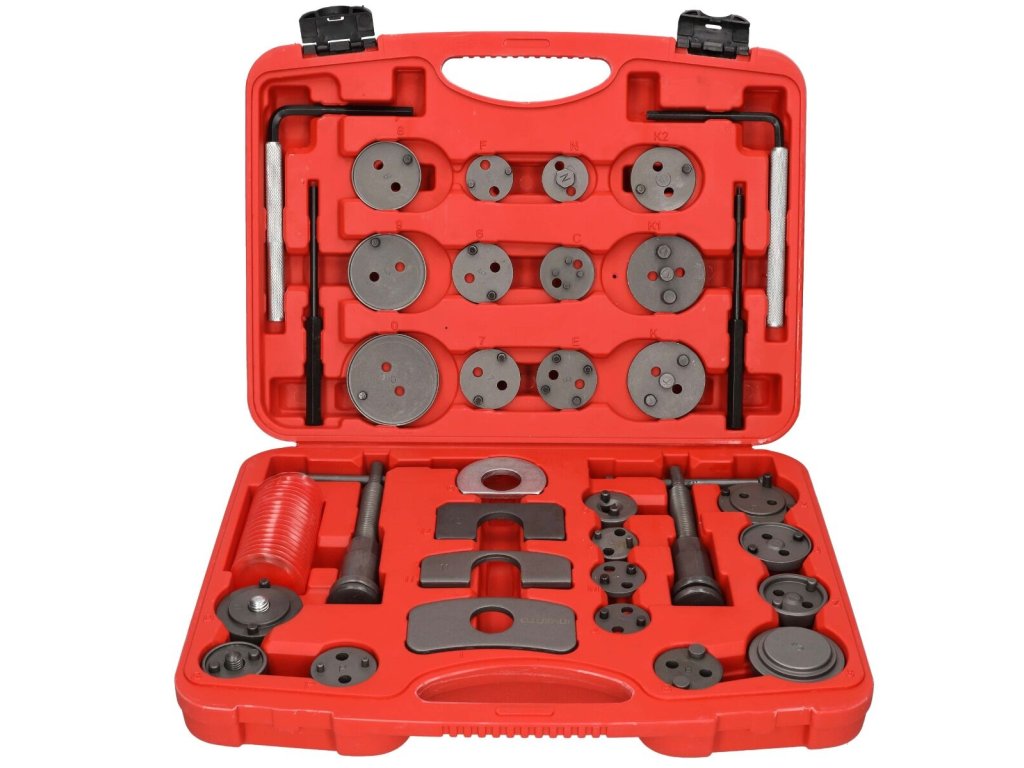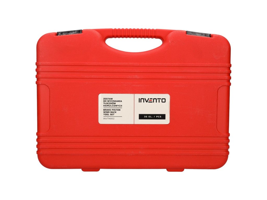 Profesionální 35dílná sada INVENTO je určena pro ruční zatlačování a vytlačování brzdových pístků při výměně brzdových destiček a servisu brzdových systémů. Hodí se pro přední i zadní brzdové třmeny, a to jak s funkcí mechanické ruční brzdy, tak i bez ní (není vhodná pro vozidla s elektrickou parkovací brzdou).