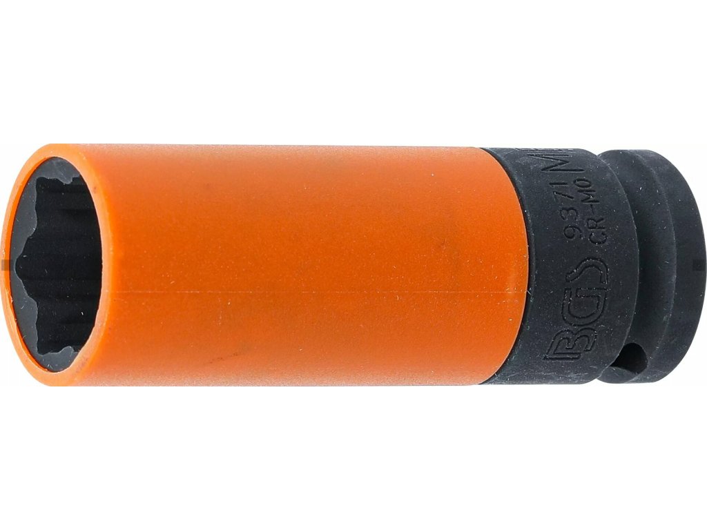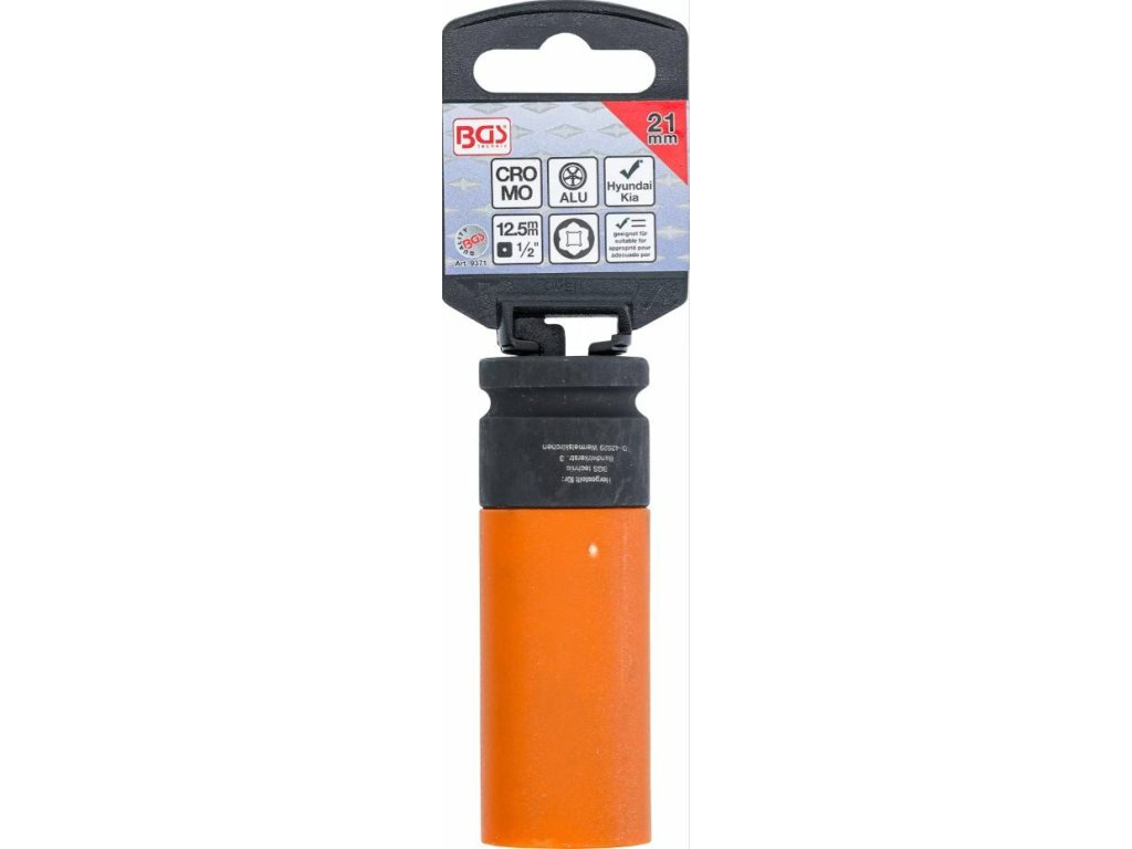 Rázová hlavice BGS je určena speciálně pro vozy Hyundai i30, Tucson a Kia. Díky přesnému profilu zajišťuje perfektní přizpůsobení šroubům kol a bezpečné použití bez rizika poškození. Je vhodná jak pro ruční klíče, tak i pro pneumatické nebo akumulátorové rázové utahováky. Plastová ochranná obálka chrání povrch hliníkových disků před poškrábáním a je barevně označena pro snadnou identifikaci.