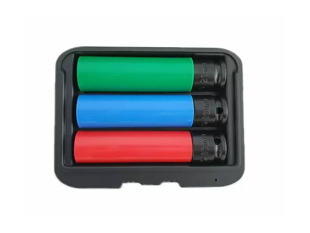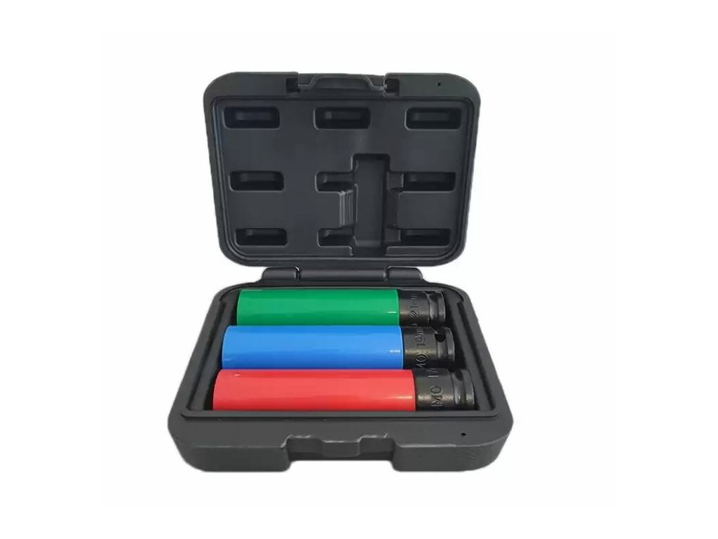 Sada extra dlouhých rázových nástrčných hlavic 1/2" – 17, 19, 21 mm na ALU disky