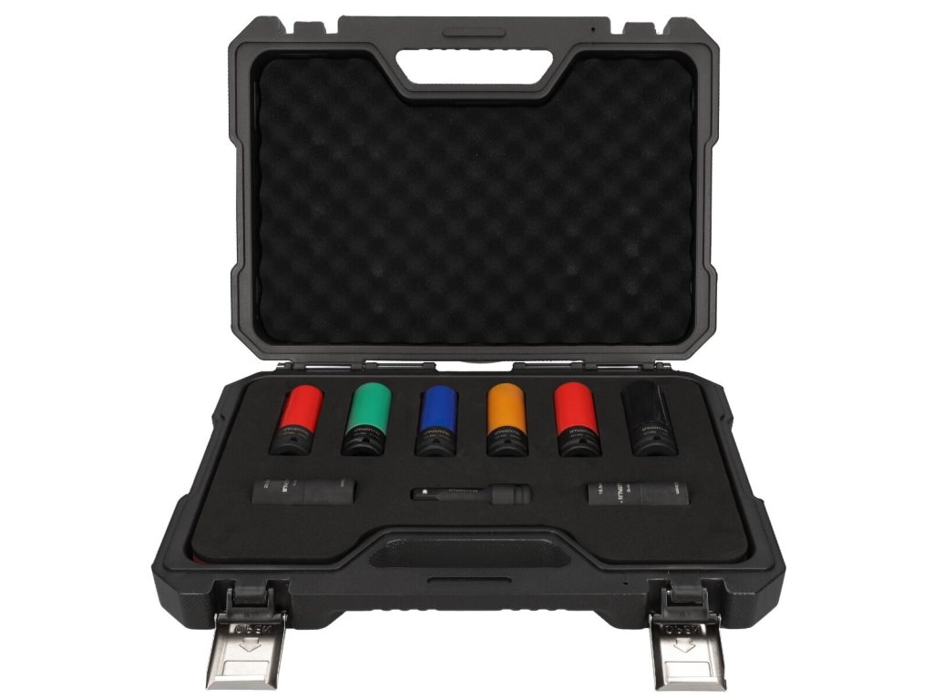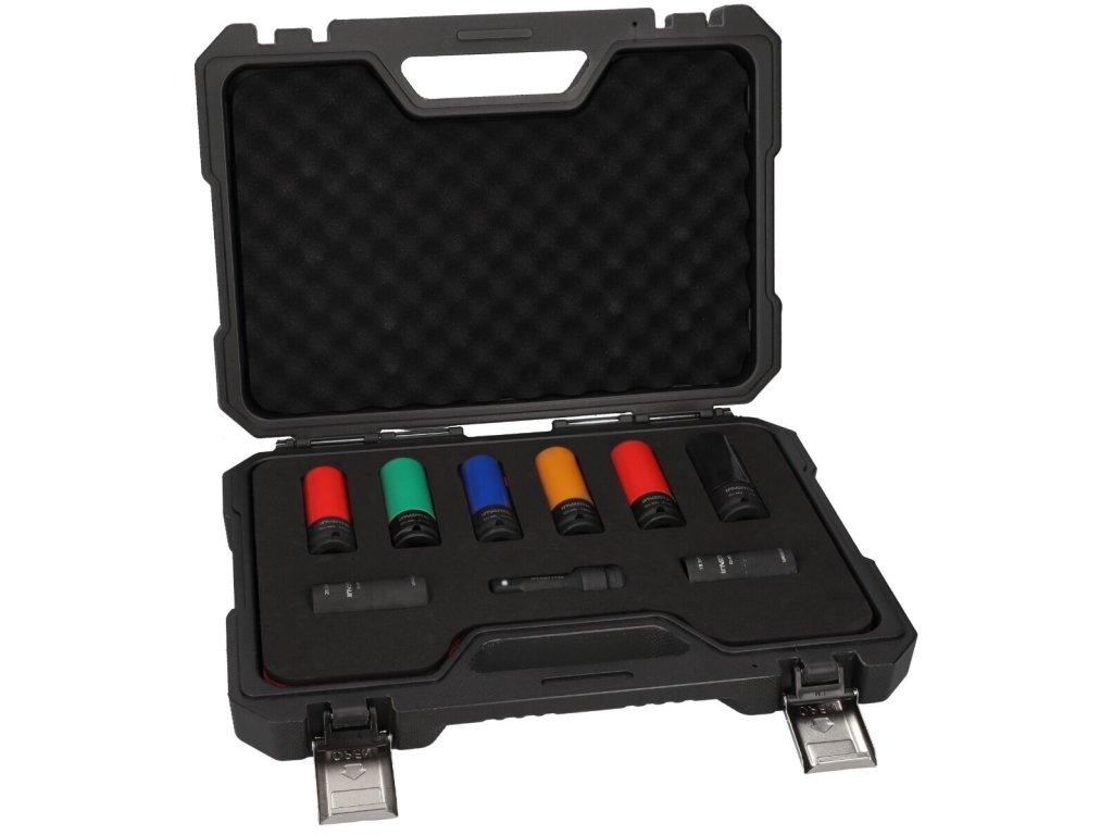 Sada je ideálním řešením pro profesionální pneuservisy a autoservisy pracující s moderními hliníkovými disky a specifickými rozměry kolových šroubů.